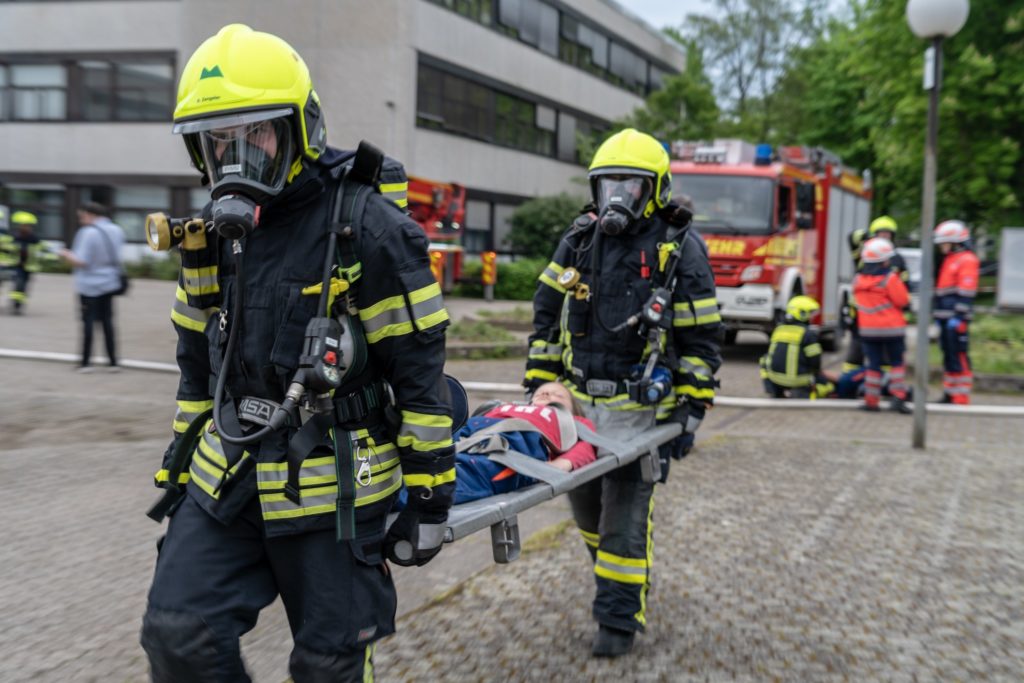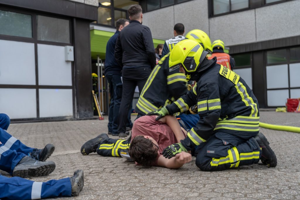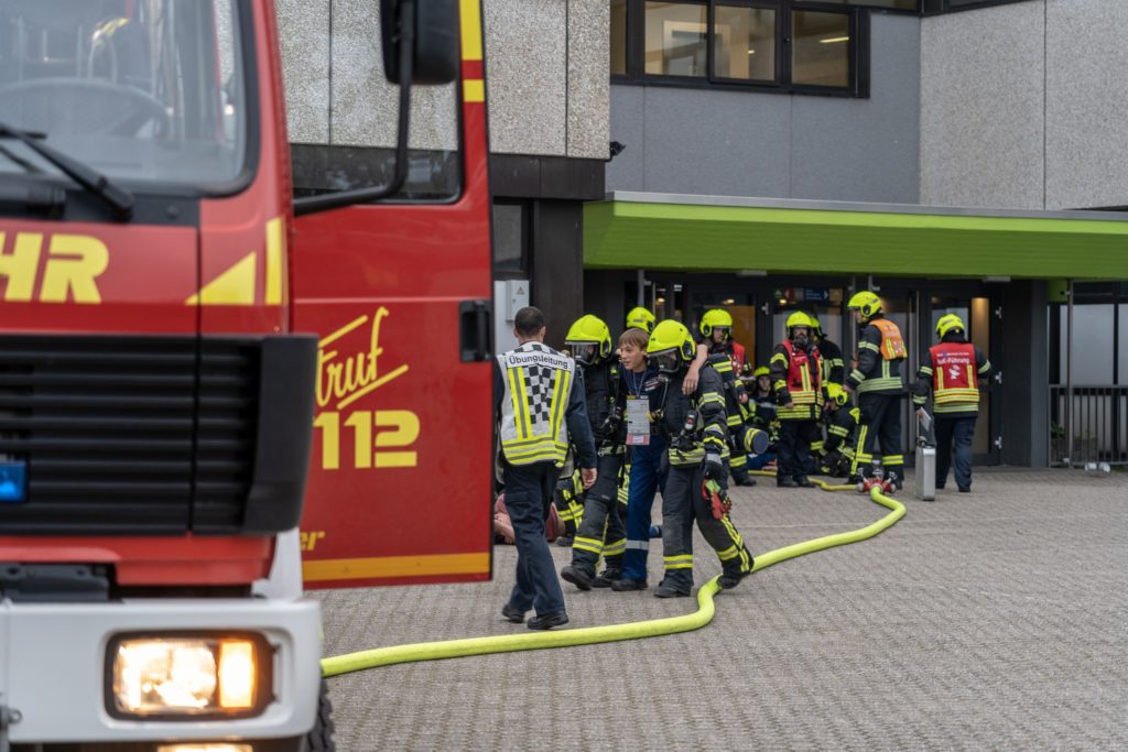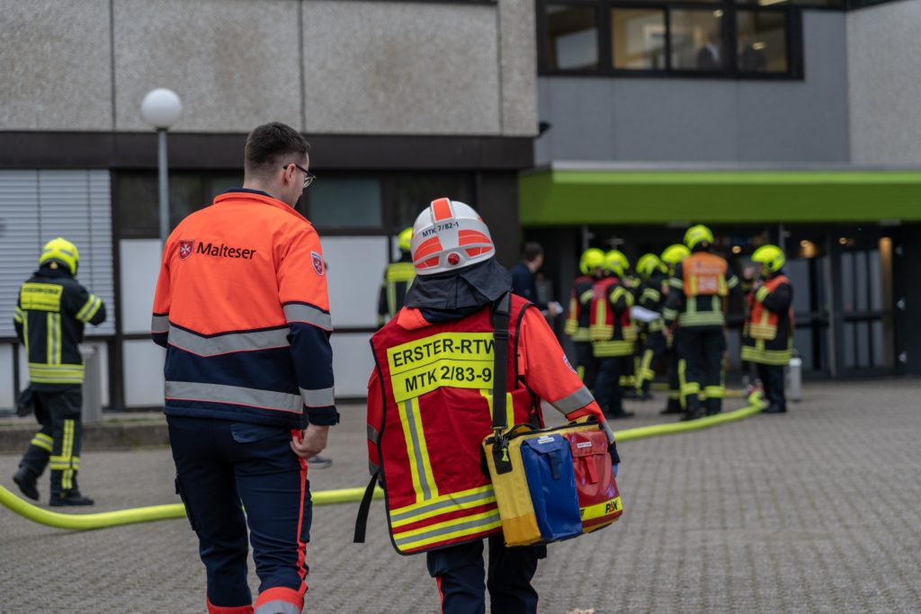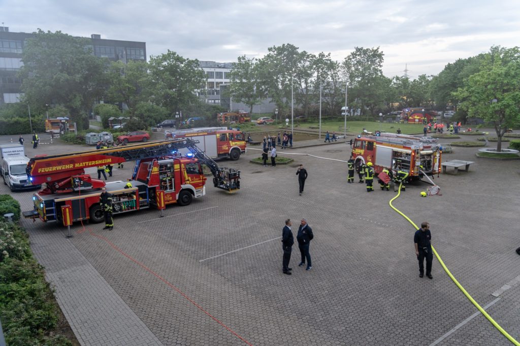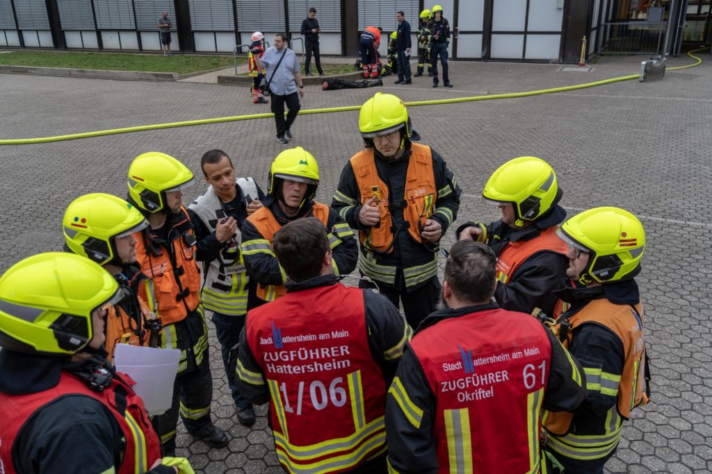 Am vergangenen Montag fand eine Einsatzübung mit allen drei Wehren an der Heinrich-Böll-Gesamtschule in Hattersheim statt. Angenommenes Szenario war ein fehlgeschlagenes Experiment in einem Chemieraum während des Schulbetriebes mit anschließendem Brandereignis und Verrauchung der Schule sowie einer hohen Anzahl an verletzten und vermissten Schülerinnen und Schüler. Simuliert wurden die Verletzten von den Jugendfeuerwehren der Stadt Hattersheim am Main.