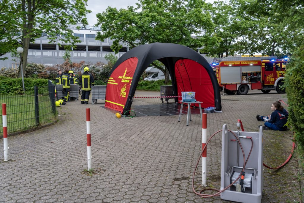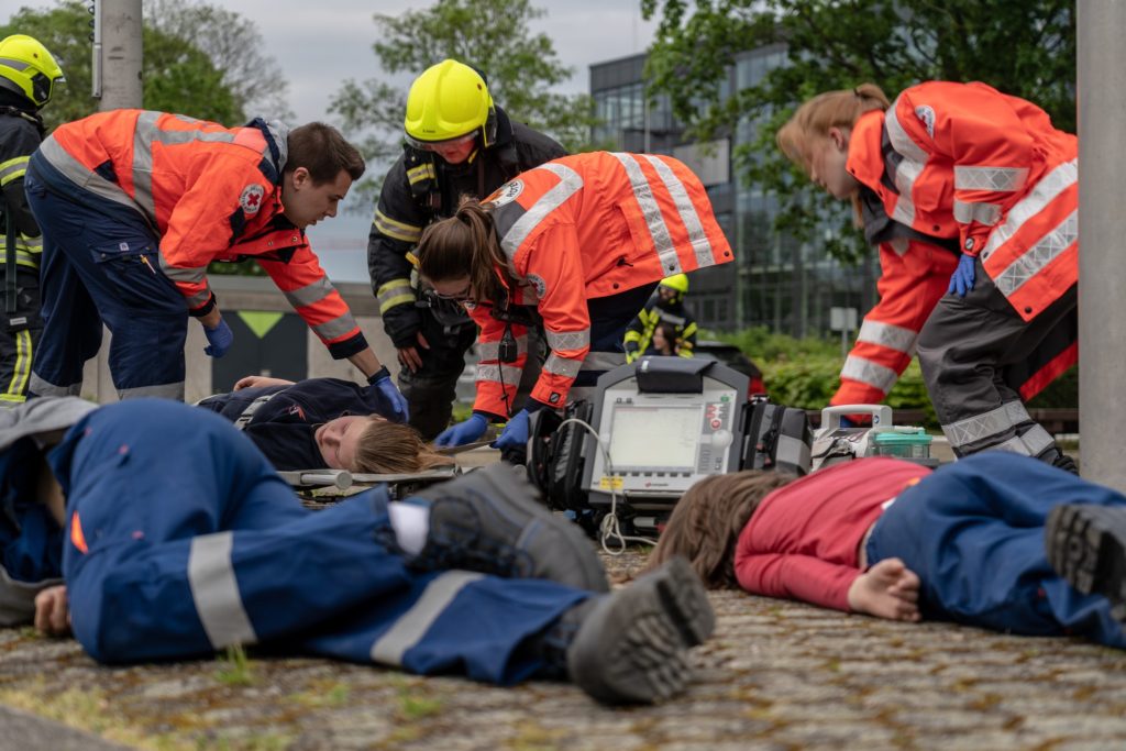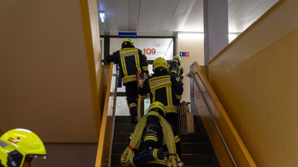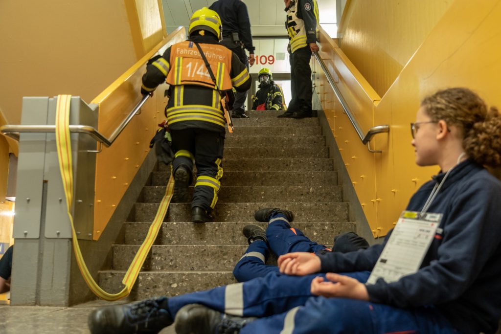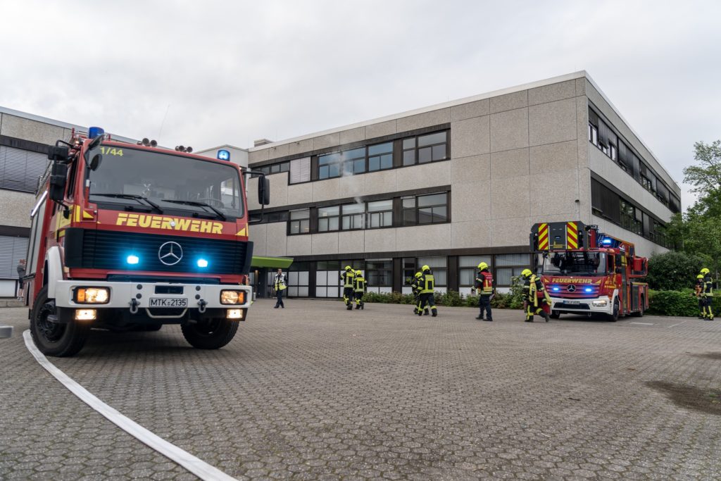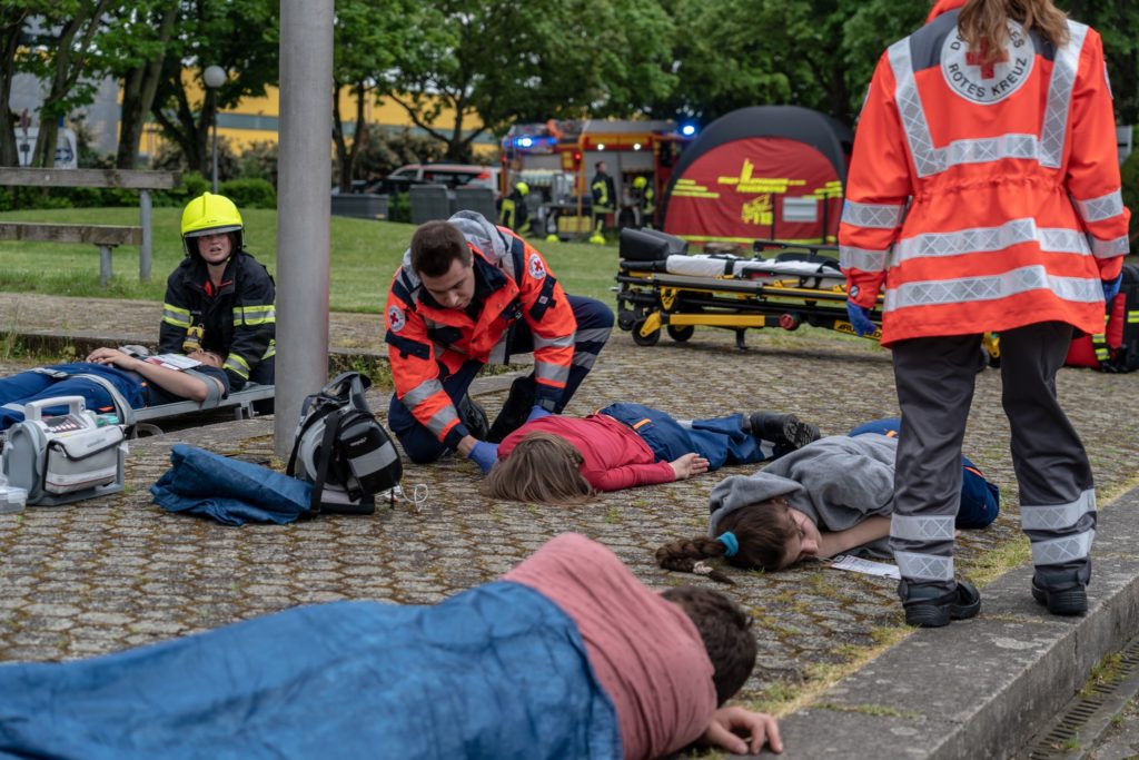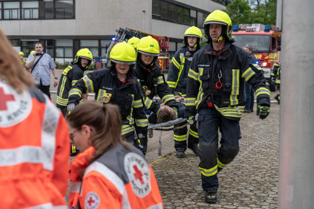 Am vergangenen Montag fand eine Einsatzübung mit allen drei Wehren an der Heinrich-Böll-Gesamtschule in Hattersheim statt. Angenommenes Szenario war ein fehlgeschlagenes Experiment in einem Chemieraum während des Schulbetriebes mit anschließendem Brandereignis und Verrauchung der Schule sowie einer hohen Anzahl an verletzten und vermissten Schülerinnen und Schüler. Simuliert wurden die Verletzten von den Jugendfeuerwehren der Stadt Hattersheim am Main.