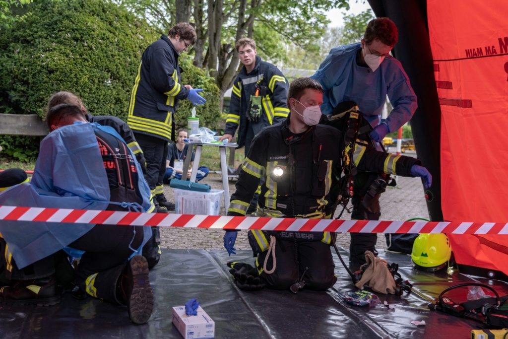 Die Übungsziele von Menschenrettung, Brandbekämpfung, Sichten und Versorgen von Verletzten, Ordnung des Raumes sowie Aufbau und Struktur der Einsatzleitung standen für den Übungsleiter und stellv. Wehrführer Patrick Meik im Fokus.