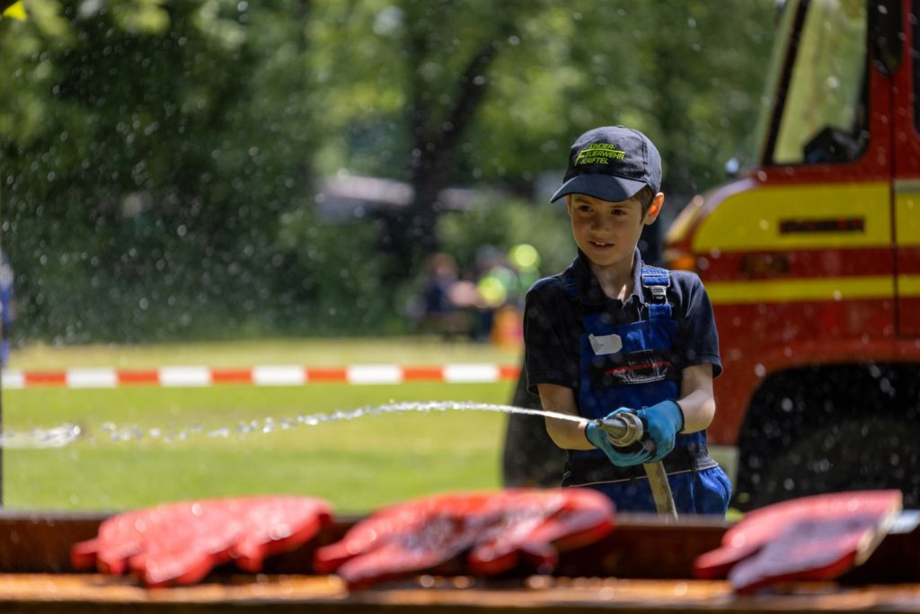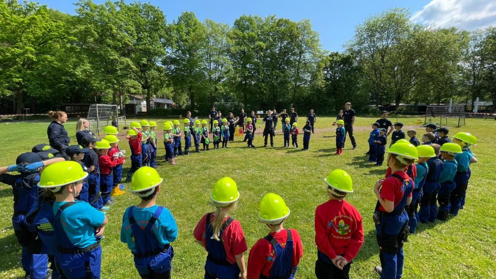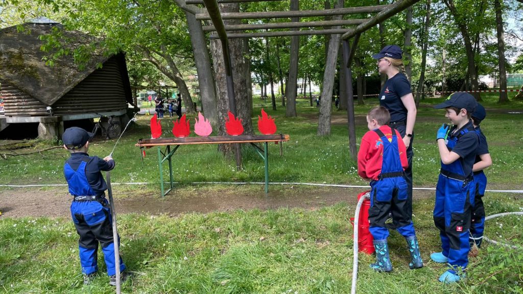 Die Kinderflamme ist ein Feuerwehrabzeichen, das aus 4 Stufen besteht. Einmal im Jahr können unsere Minis zeigen, was sie schon alles gelernt haben. Um das Abzeichen zu erlangen, müssen sie altersgerechtes feuerwehrtechnisches Wissen und Teamwork beweisen. Prüfungsaufgaben sind beispielsweise das Absetzen eines Notrufes, das ertasten und erklären von Feuerwehrgeräten, das Löschen einer Kerze mit einer Eimerkette und vieles mehr.