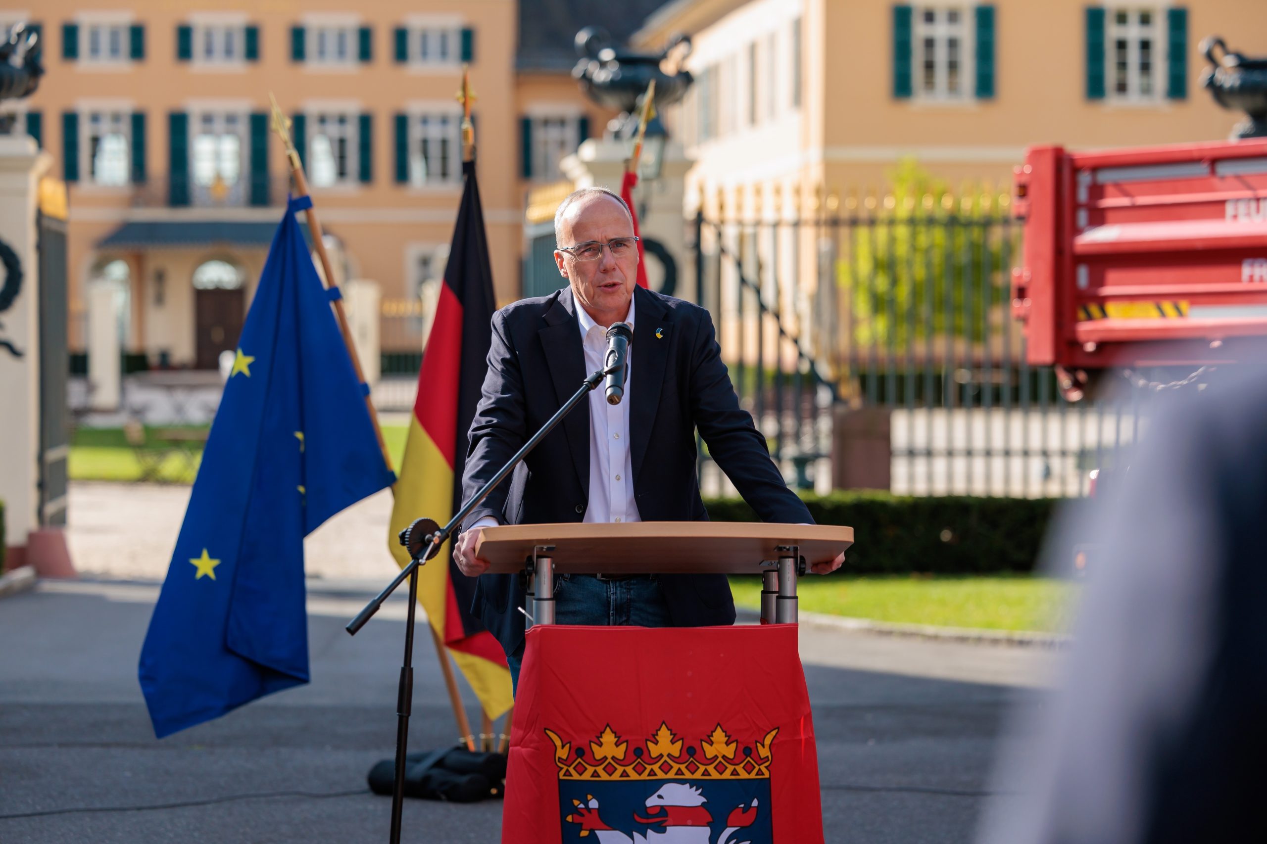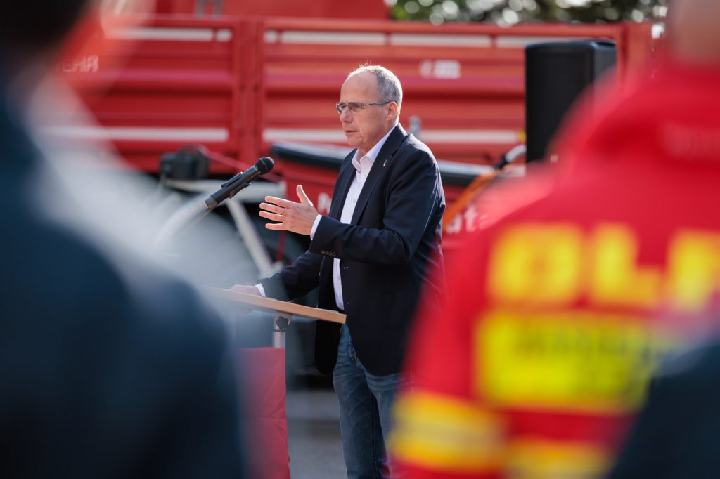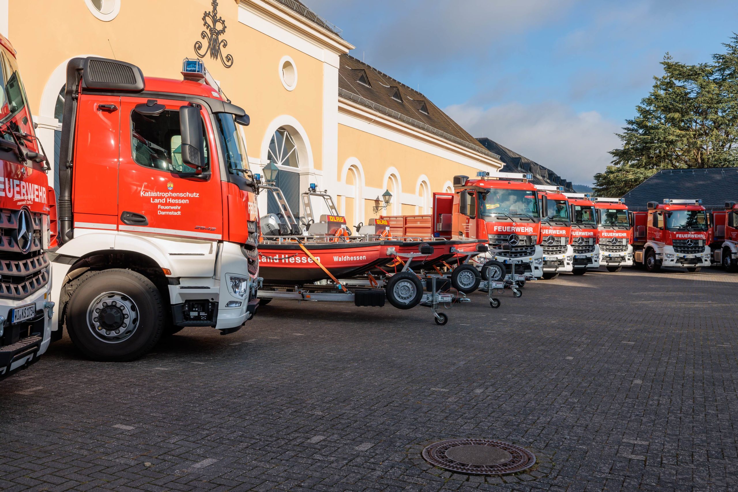 Im Rahmen der alljährlichen Landesbeschaffung für den Hessischen Katastrophenschutz hat Innenminister Peter Beuth heute in Johannisberg 19 neue Wechselladerfahrzeuge sowie neun Rettungsboote an die Einheiten des Hessischen Katastrophenschutzes übergeben. Darunter auch ein Wechselladerfahrzeug „WLF 26/6900“ mit einem Abrollbehälter „AB-Pritsche“ für den Main-Taunus-Kreis, das bei der Feuerwehr Hattersheim stationiert wird.