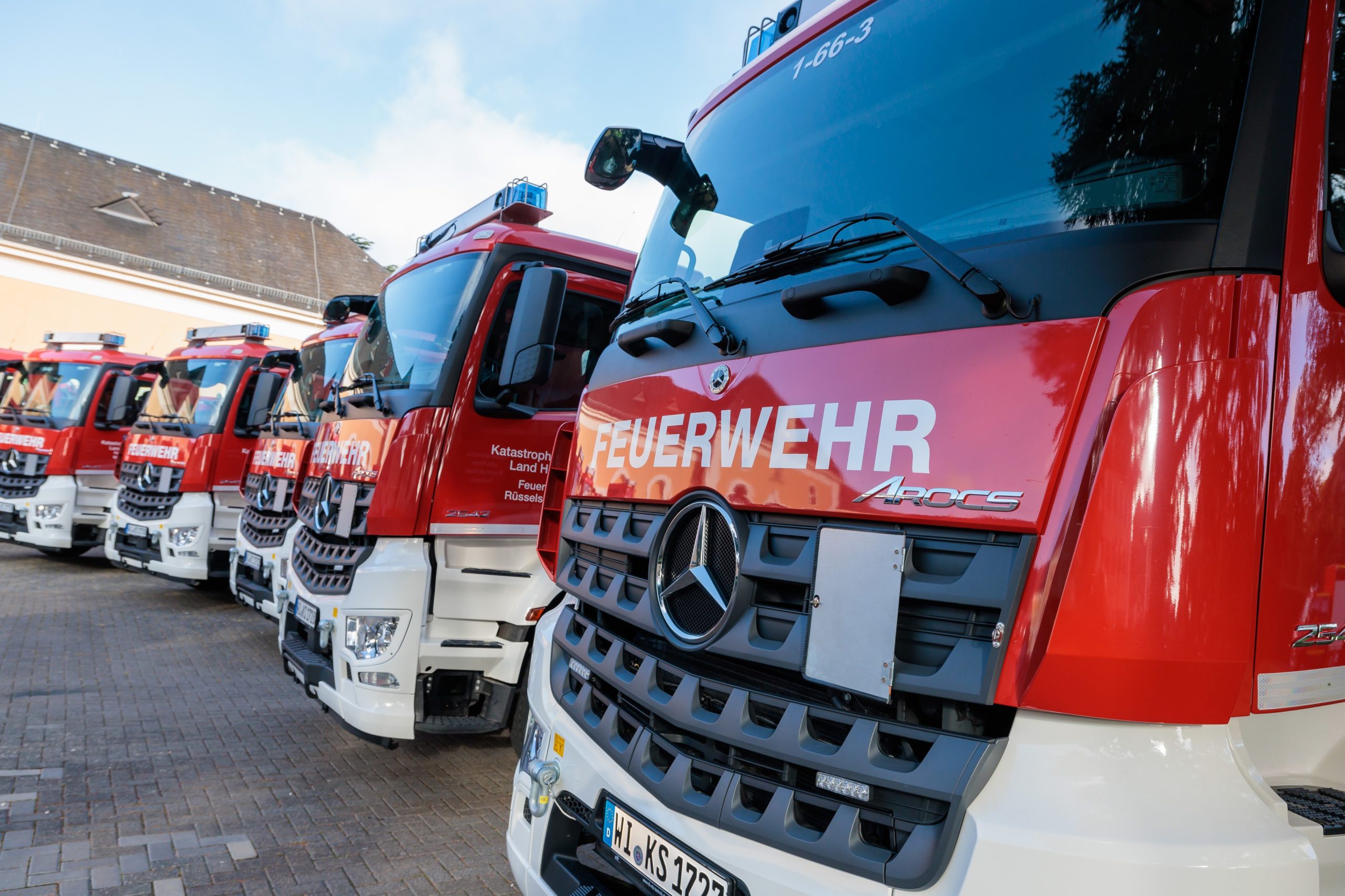 Die Wechselladerfahrzeuge im Gesamtwert von fast 4,6 Millionen Euro dienen dem Transport von Abrollbehältern mit lageangepassten Inhalten zum Einsatz beispielsweise bei Starkregen, Hochwasser oder Waldbränden und ergänzen die bereits bestehenden Transportmöglichkeiten flächendeckend in den Zuständigkeitsbereichen der unteren Katastrophenschutzbehörden auf Kreisebene.