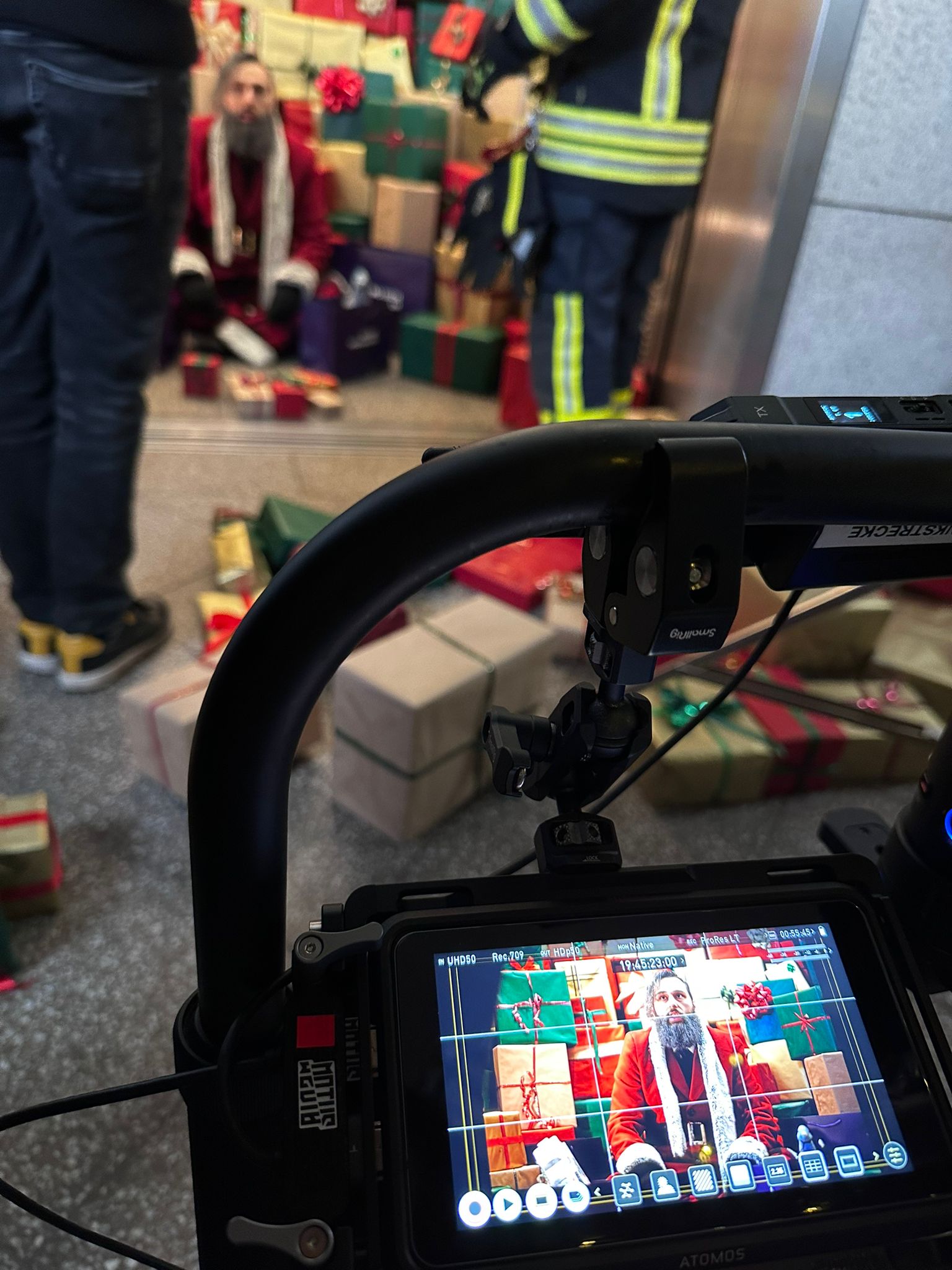 Die Produktion des herzerwärmenden Films war eine Mammutaufgabe, die von 35 ehrenamtlich engagierten Feuerwehrleuten vor und hinter der Kamera gemeistert wurde. Mit 8 Drehtagen, 70 Takes und 1.500 GB Rohmaterial wurde eine beeindruckende Leistung vollbracht. Von der sorgfältigen Planung der Kostüme, Sets und Requisiten ab Januar bis zu den Dreharbeiten an 7 verschiedenen Locations im November – darunter eine Weihnachtsmannwerkstatt in der Schreinerei Caspari in Okriftel und im Main-Taunus-Zentrum in Sulzbach.