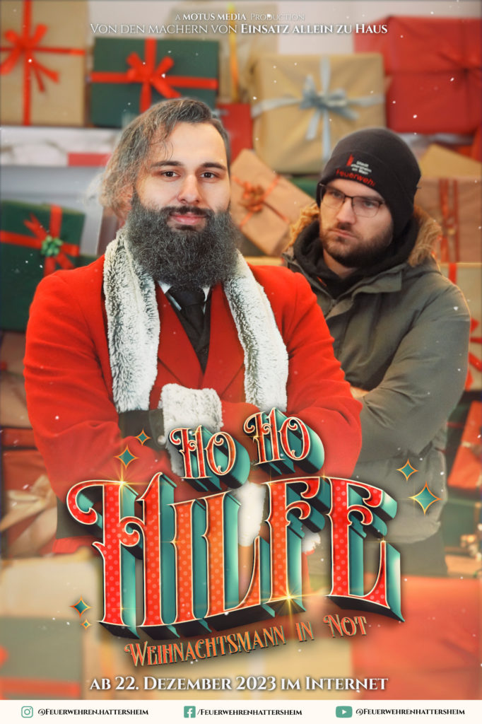 Mit „HO HO HILFE – Weihnachtsmann in Not“ möchten die Feuerwehren der Stadt Hattersheim am Main auf ihre ehrenamtliche Arbeit aufmerksam machen. Der Film zeigt, dass die Feuerwehr das ganze Jahr über im Einsatz ist, um allen zu helfen, die in Not geraten sind – auch dem Weihnachtsmann. Die Botschaft ist klar: Die Feuerwehr freut sich über jedes neue Mitglied in ihren Reihen, ohne zu viel spoilern zu wollen – auch über den Weihnachtsmann.
