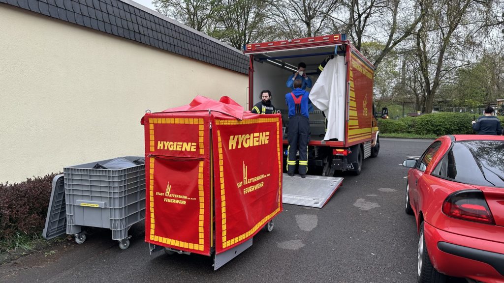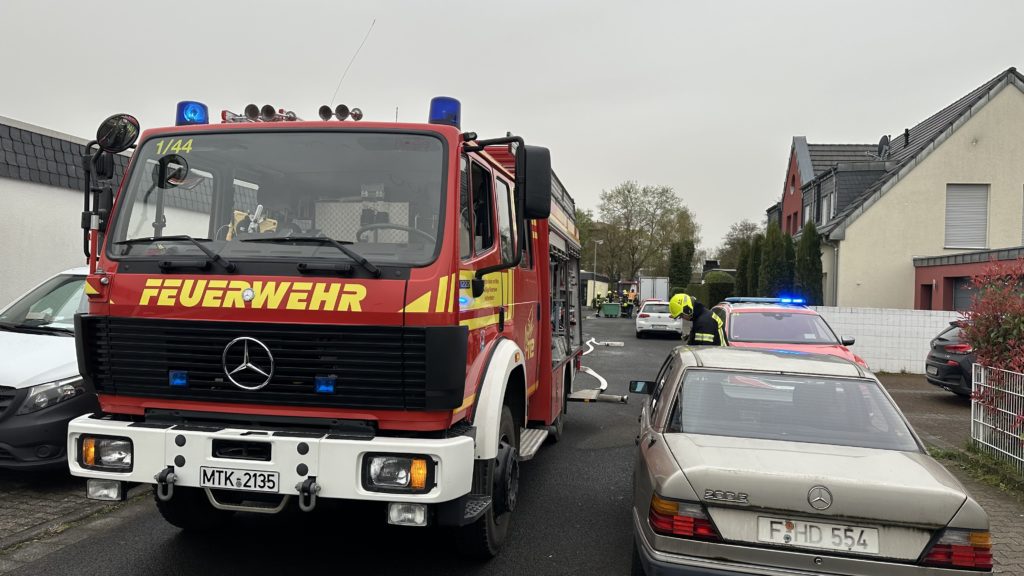 Mit der Meldung „Schwarzer Rauch aus Kamin und Fenster“ wurden wir am Ostersamstag um 09:42 Uhr in die Straße „Im Lerchenfeld“ in Hattersheim alarmiert. Wir kontrollierten das leerstehende Reihenhaus mit dem Verdacht auf einen Kaminbrand.