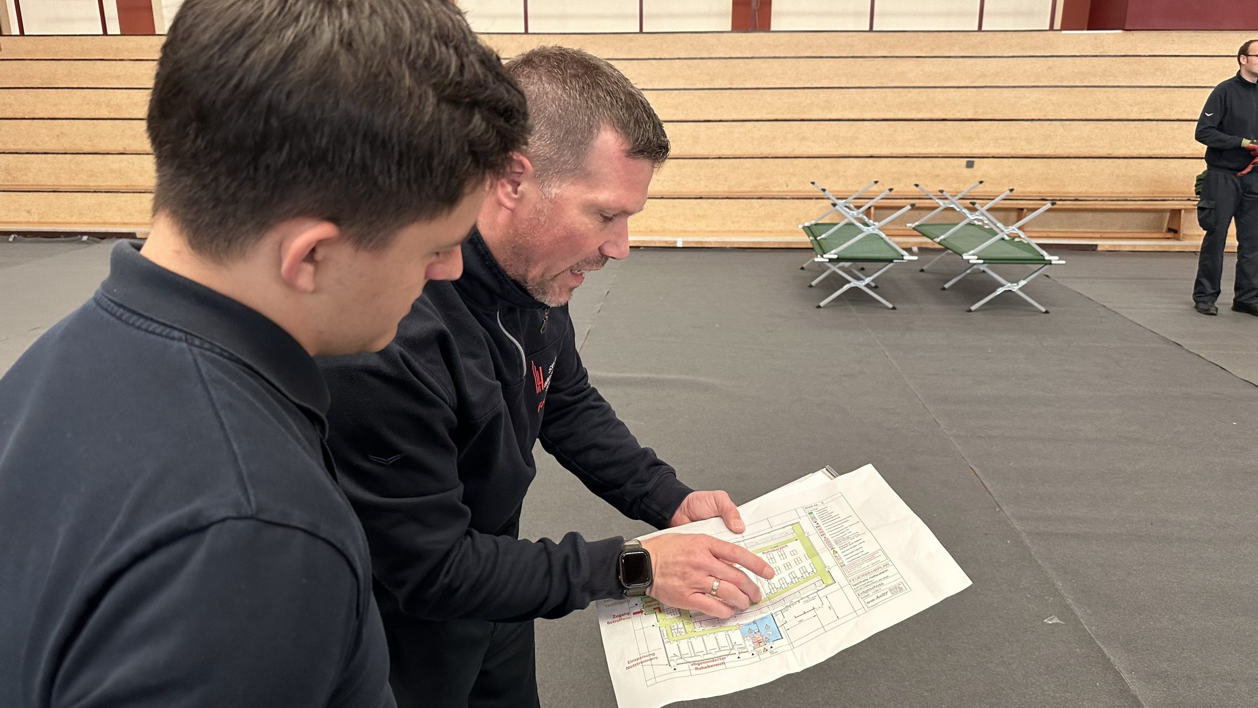 Mit den Erfahrungen aus der Übung werden nun das Konzept verfeinert und Einsatzpläne erarbeitet, damit die Einrichtung und der Betrieb des Betreuungsplatzes im Ernstfall reibungslos funktionieren.