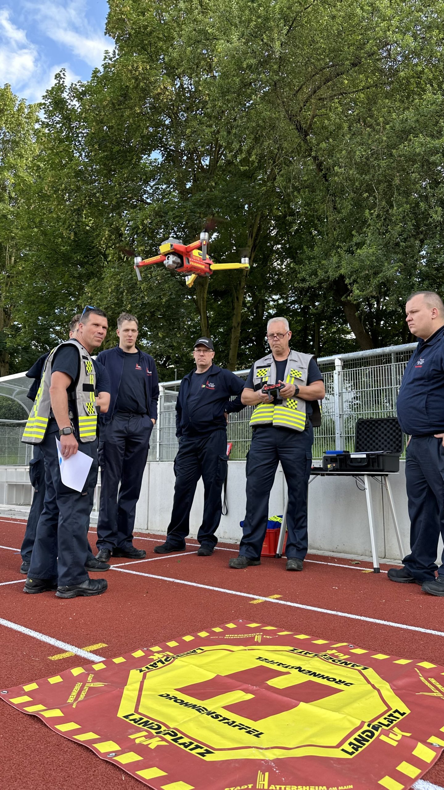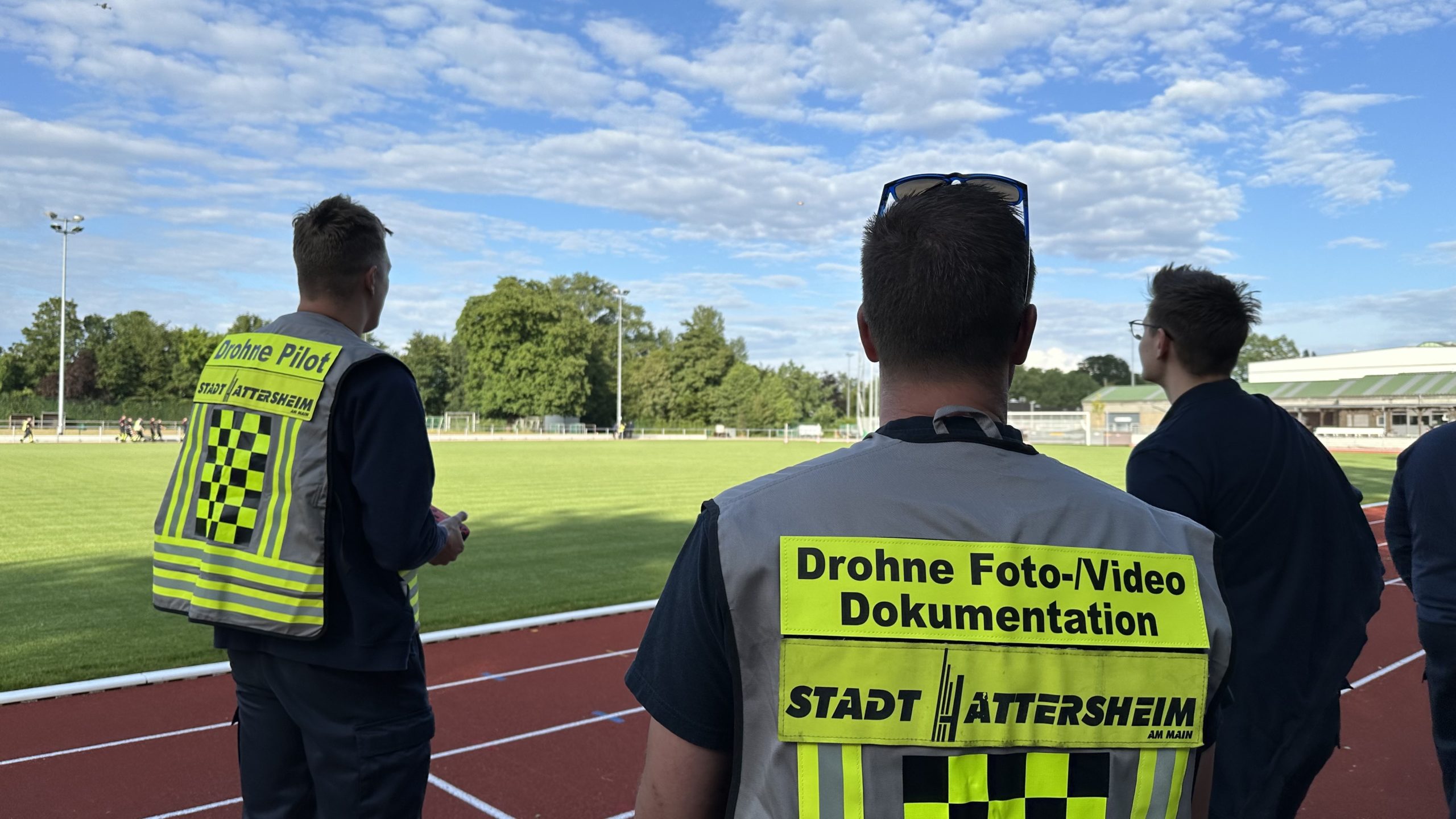 Fünf Drohnen kreisten am Dienstagabend über dem Hattersheimer Sportplatz. Dort fand die erste gemeinsame Übung des neu gegründeten Drohnenverbundes der MTK-Feuerwehren statt. Sechs Stationen galt es für die Drohnenstaffeln zu absolvieren, zum Beispiel Slalom fliegen, Erkundungsflüge durchführen, Hitzepunkte erkennen und die Temperatur bestimmen oder mit der Wärmebildkamera den Füllstand von Behältern ermitteln. Auch der stellvertretende Kreisbrandinspektor Thomas Rieger überzeugte sich von der Leistungsfähigkeit.