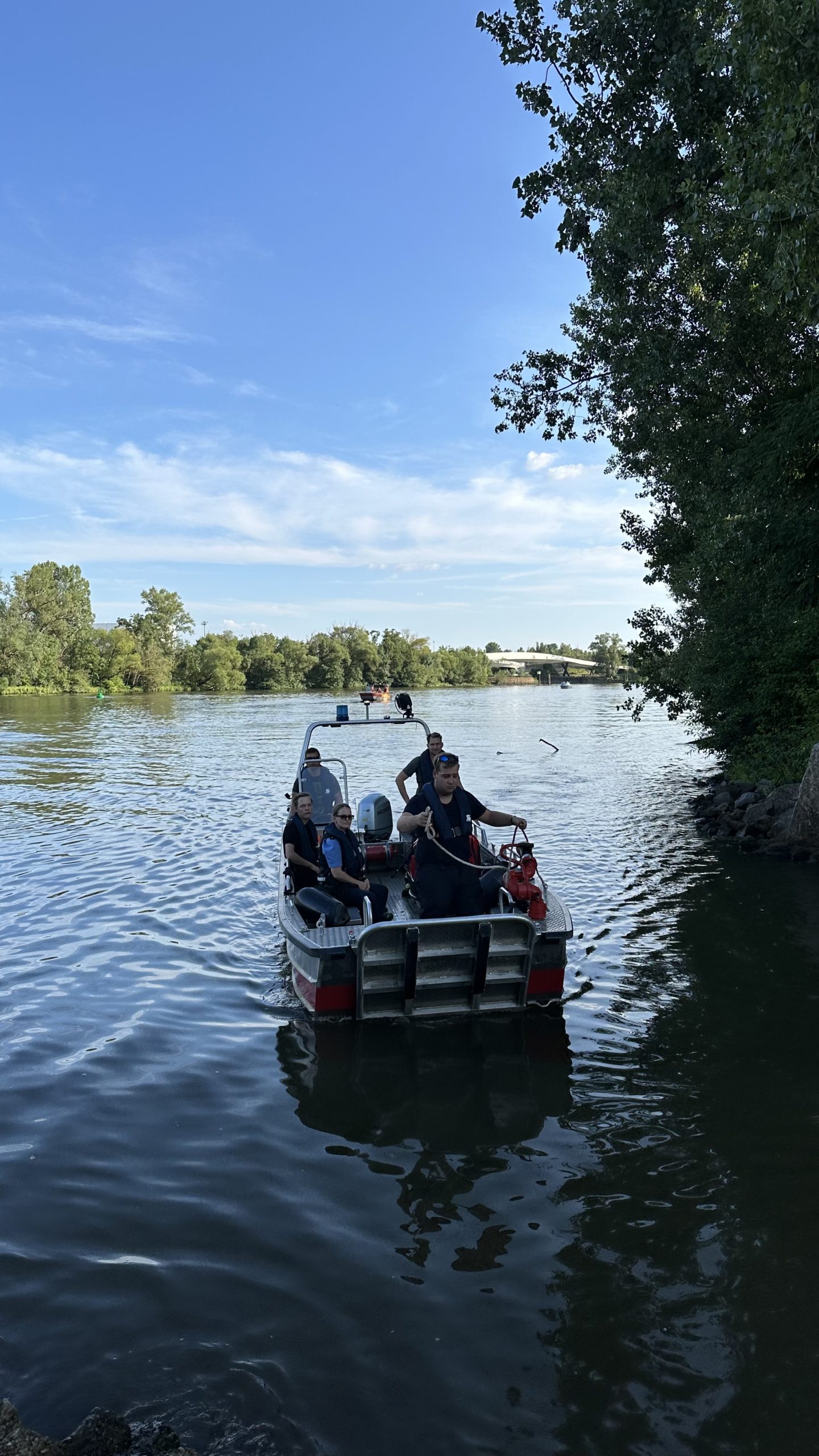 Eine Person konnte eigenständig an Land schwimmen, ein Sportboot sicherte die zweite Person und das Jetski bis zum Eintreffen der Feuerwehrboote. Die Person und das Jetski wurden von Feuerwehrkräfte an Land gebracht. Die beiden Jetski-Fahrer wurden vom Rettungsdienst untersucht, blieben aber glücklicherweise unverletzt.