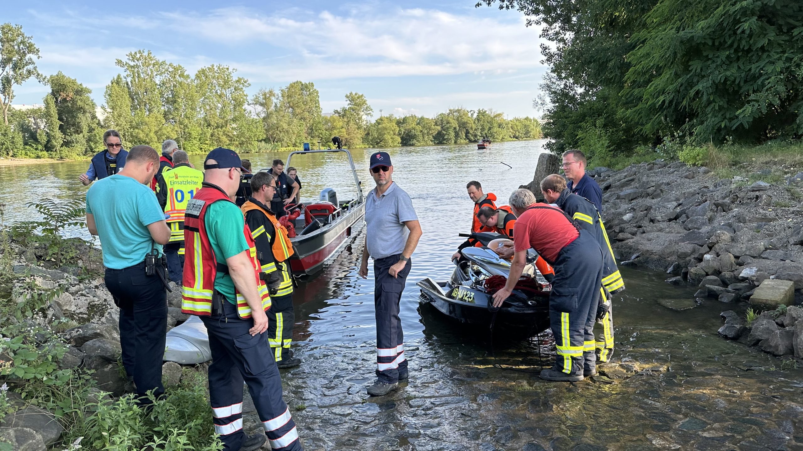 Ein Großaufgebot von Feuerwehr, Wasserrettung, Rettungsdienst und Polizei aus dem Main-Taunus-Kreis und dem Kreis Groß-Gerau ist am Sonntagabend um 18:08 Uhr nach Hattersheim-Eddersheim zur Slipstelle unter der A3-Brücke alarmiert worden. Auch ein Polizeihubschrauber rückte an. Auf dem Main war ein Jetski mit zwei Personen verunglückt.