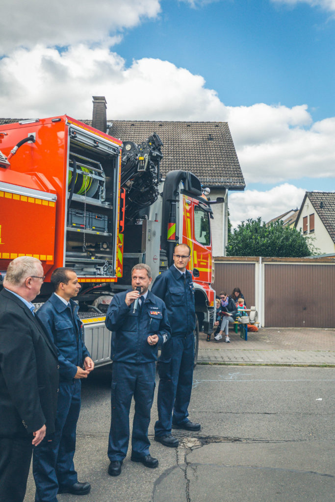 Die Übergabe des neuen Abrollbehälters war einer der Höhepunkte des Tages der offenen Tür, der zahlreiche Besucher anlockte und spannende Einblicke in die Arbeit der Feuerwehr bot.