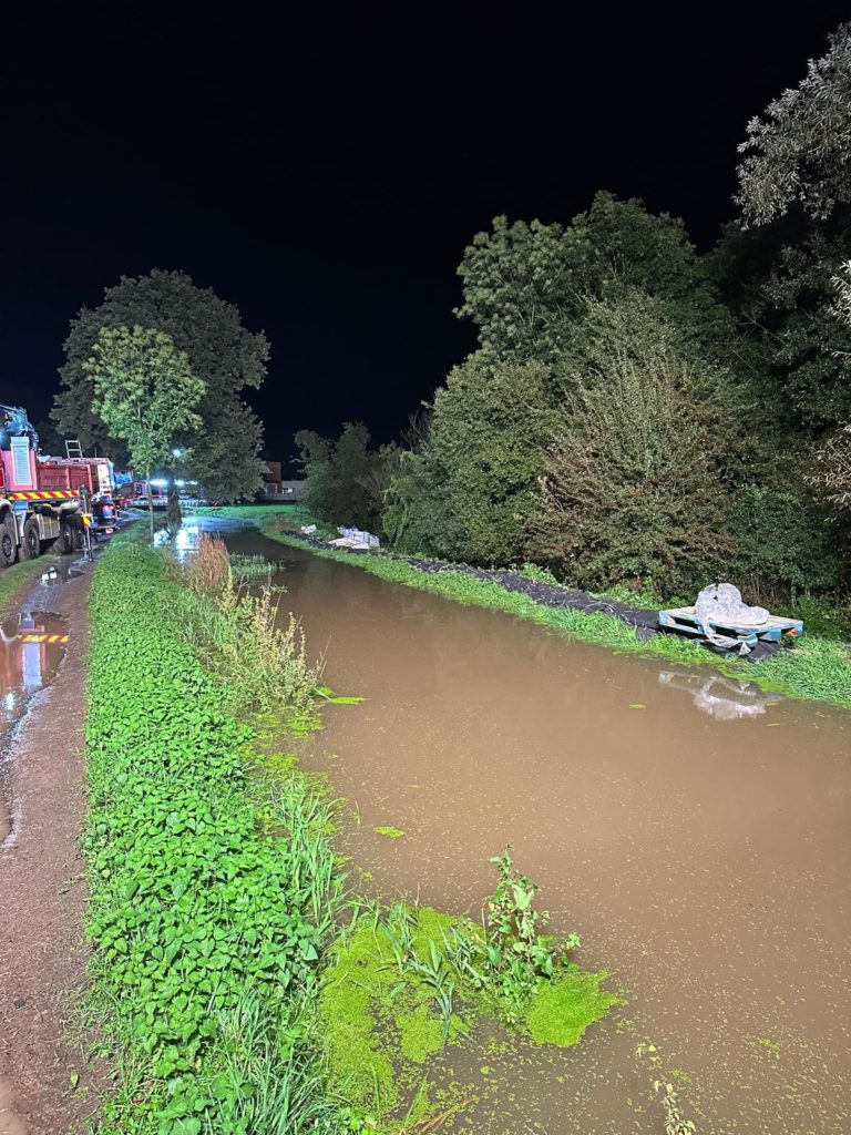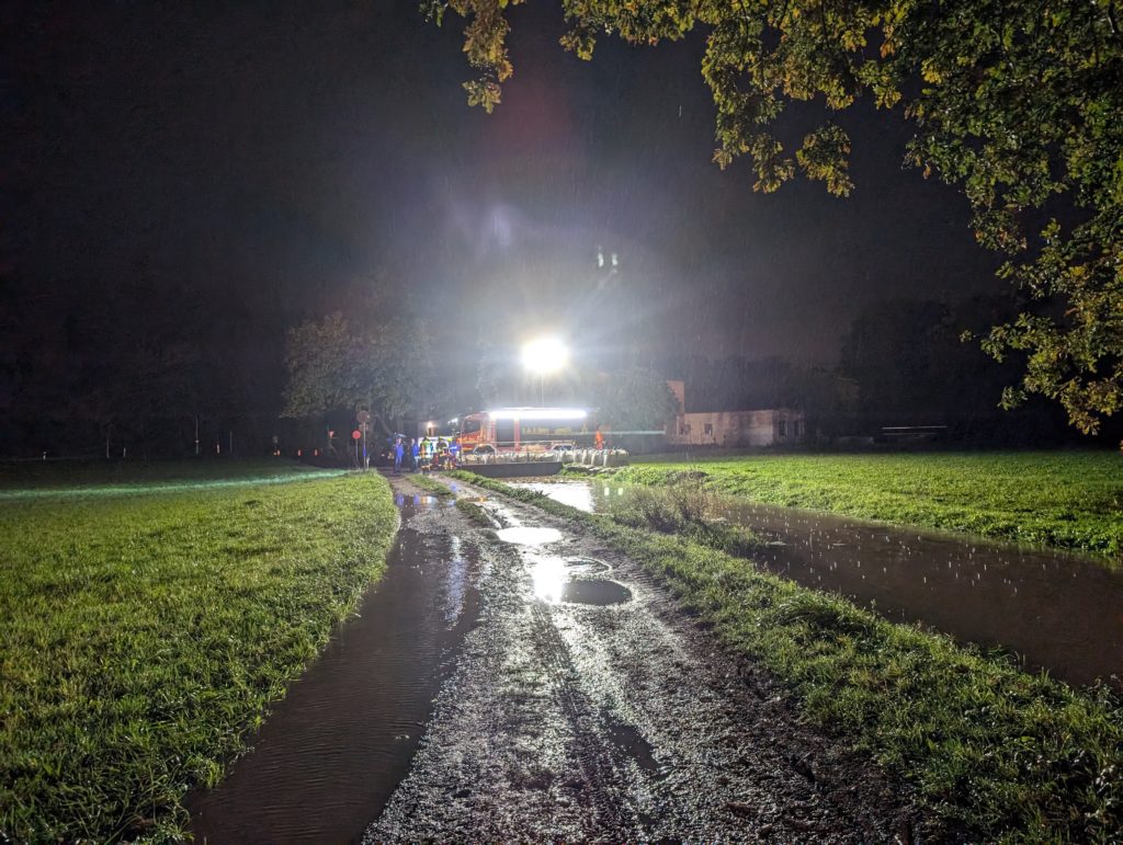 Die starken Regenfälle sorgten am Donnerstagabend für einen langwierigen Hochwassereinsatz der Hattersheimer Feuerwehren. Der vollgelaufene Ardelgraben in Eddersheim sorgte für Probleme. Anwohner befürchteten, dass ein Damm brechen könnte, der bereits auf rund 15 Metern überspült war und wählten gegen 19:00 Uhr den Notruf.