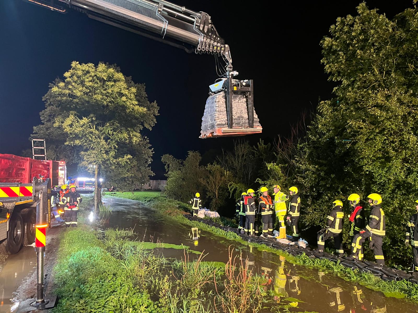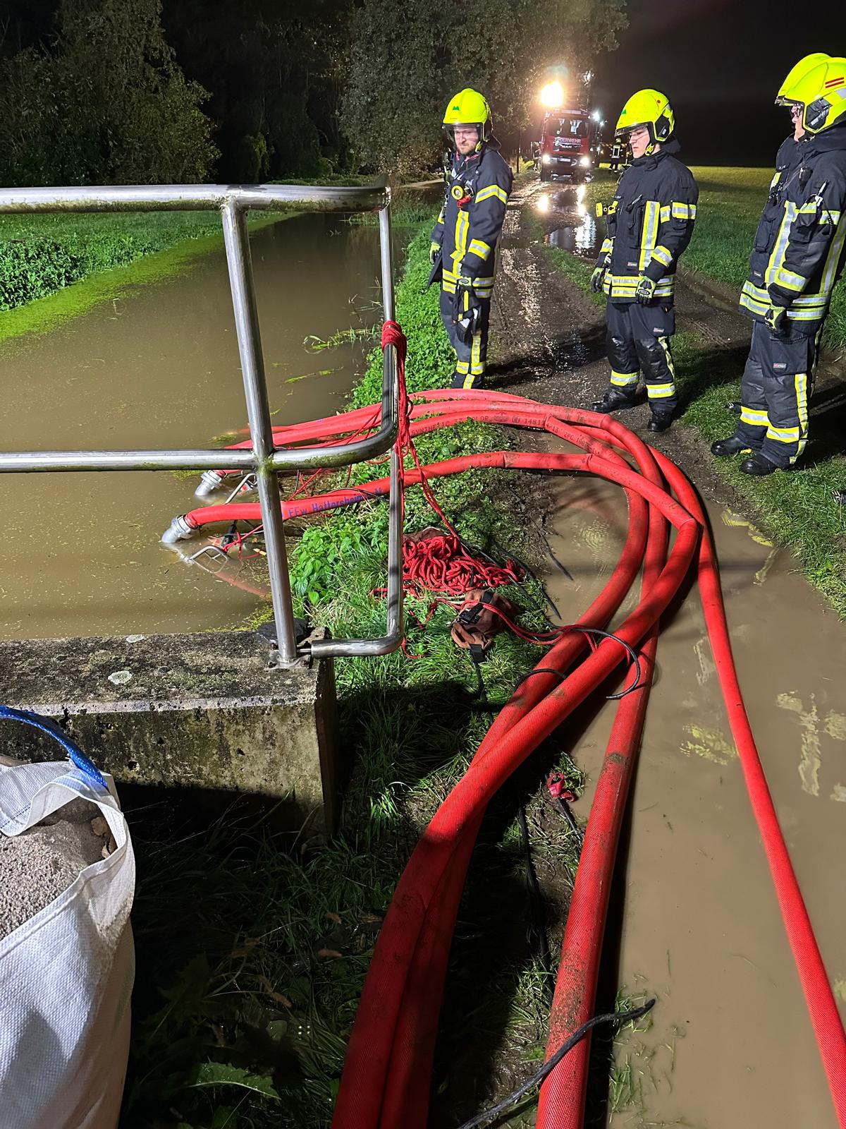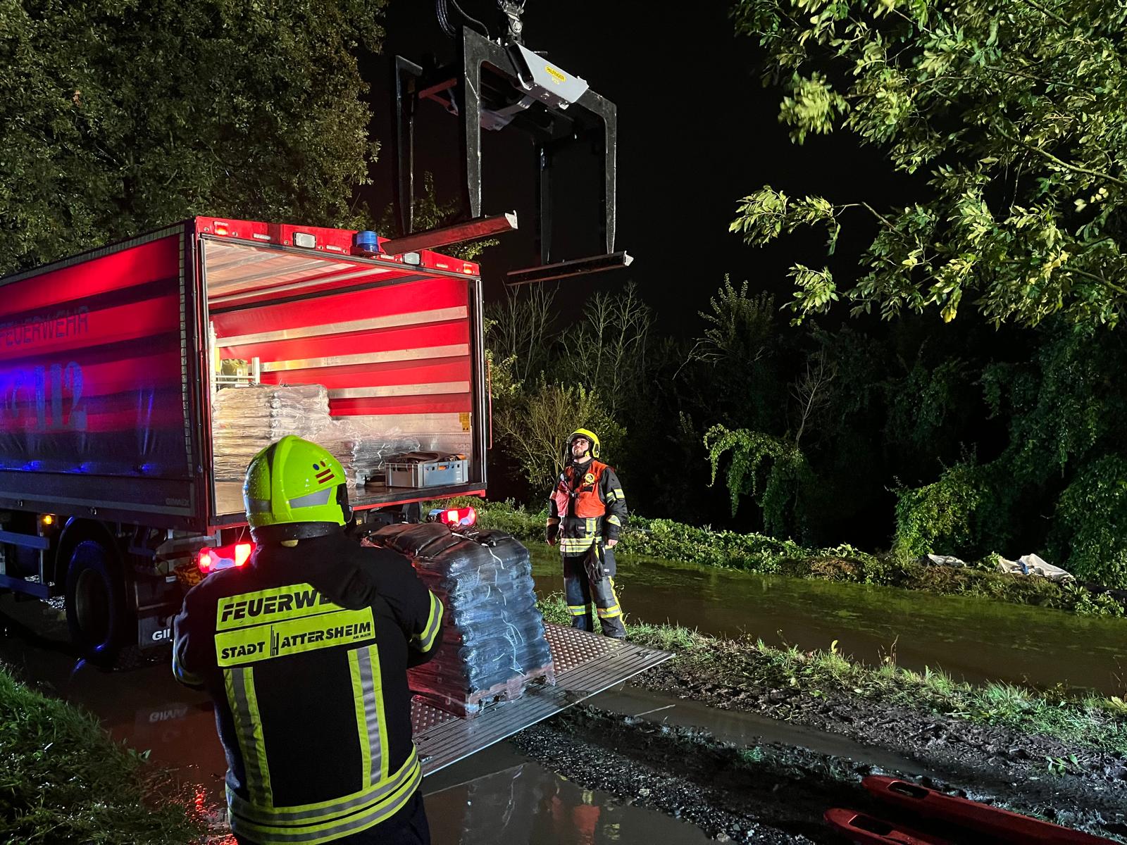 Die starken Regenfälle sorgten am Donnerstagabend für einen langwierigen Hochwassereinsatz der Hattersheimer Feuerwehren. Der vollgelaufene Ardelgraben in Eddersheim sorgte für Probleme. Anwohner befürchteten, dass ein Damm brechen könnte, der bereits auf rund 15 Metern überspült war und wählten gegen 19:00 Uhr den Notruf.