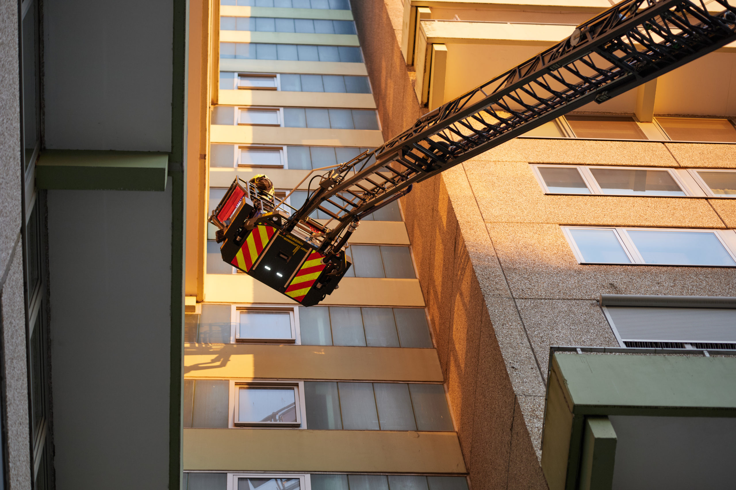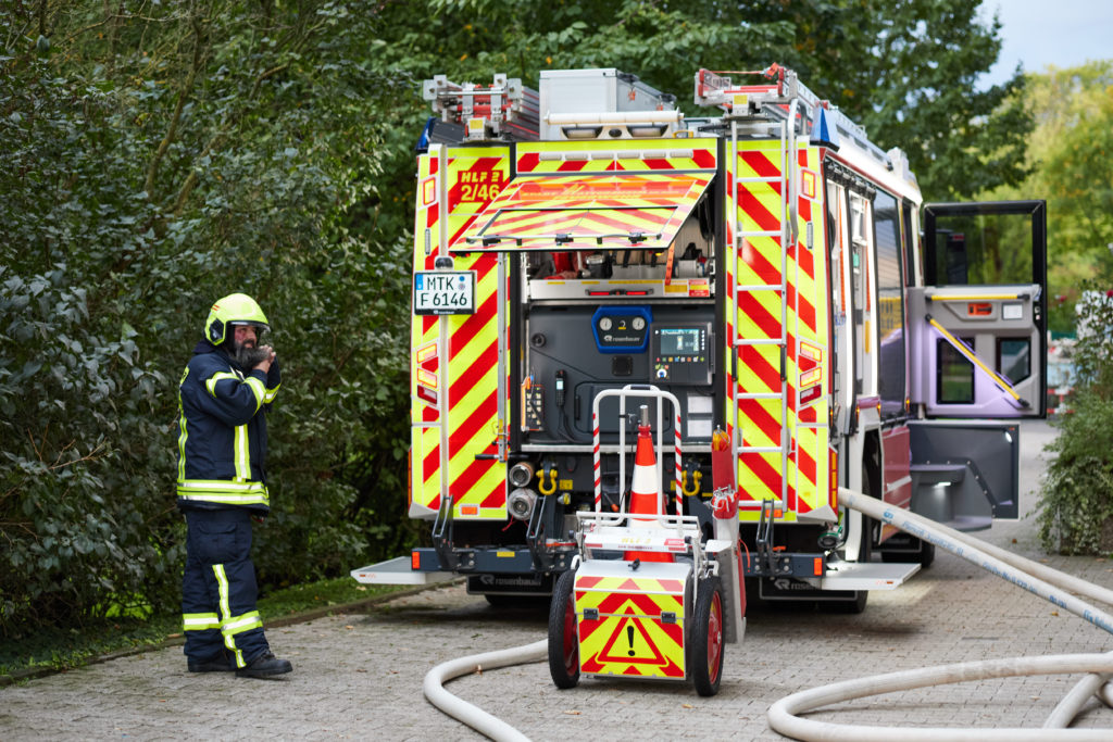Aufgrund einer ausgelösten Brandmeldeanlage wurden die Feuerwehren der Stadt Hattersheim am Main am Mittwochabend um 17:53 Uhr zu einem Wohnhochhaus im Südring alarmiert. Nach der Kontrolle im Bereich des ausgelösten Druckknopfmelders im 16. Obergeschoss konnten die Feuerwehrkräfte zunächst Entwarnung geben und gingen von einem mutwilligen Fehlalarm aus. Kurz vor dem Einrücken erreichte die Leitstelle jedoch ein Notruf, in dem eine Rauchentwicklung auf dem Dach gemeldet wurde.