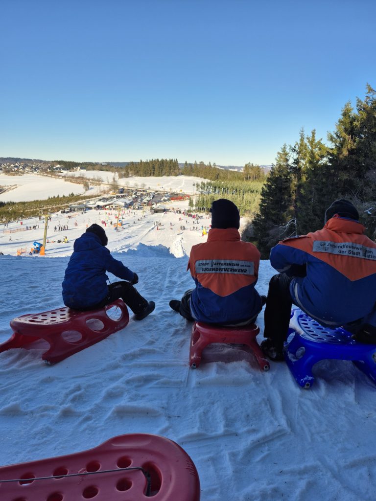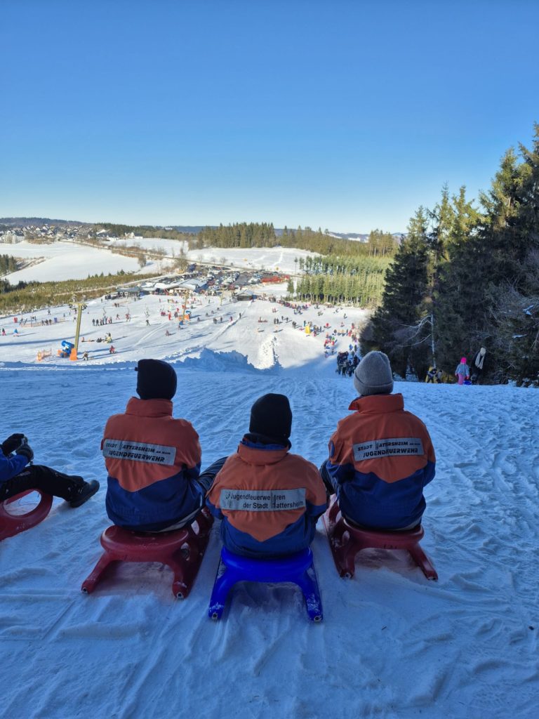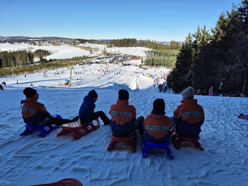 Für 38 Jugendliche und Betreuerinnen und Betreuer der drei Hattersheimer Jugendfeuerwehren ging es heute gemeinsam mit der Kreisjugendfeuerwehr Main-Taunus zum alljährlichen Rodelausflug nach Winterberg (Sauerland).
