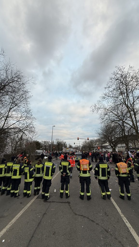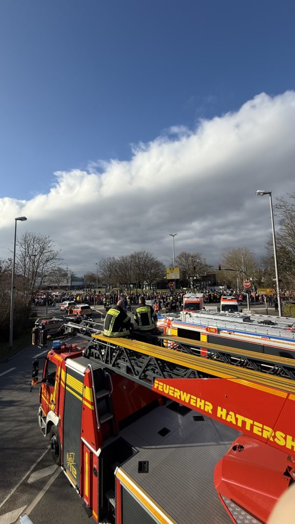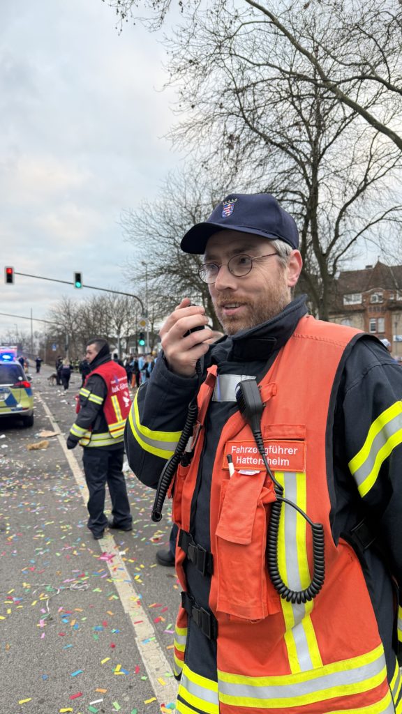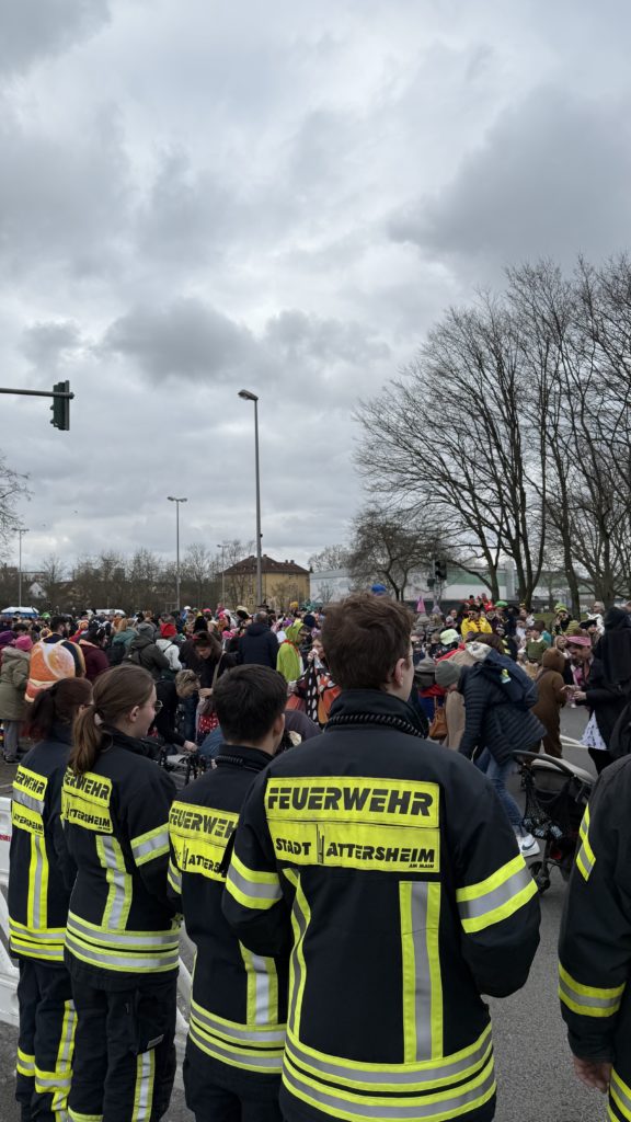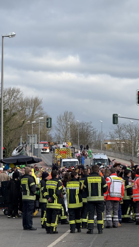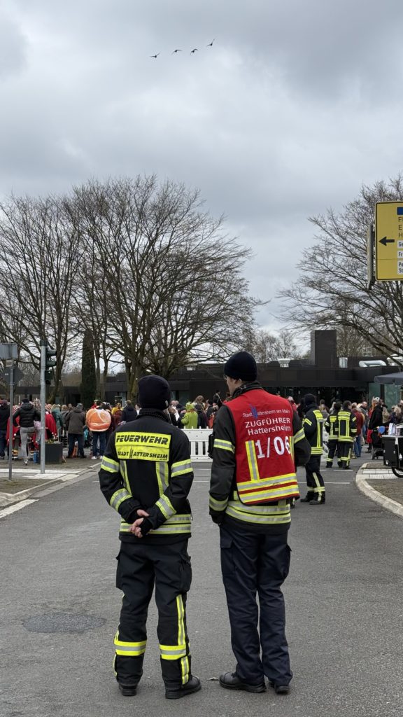 Während des Hattersheimer Fassenachtszuges sorgten die Feuerwehren der Stadt Hattersheim am Main zusammen mit dem Deutschen Roten Kreuz, der Polizei und der Stadtpolizei für die Sicherheit der Närinnen und Narren.
