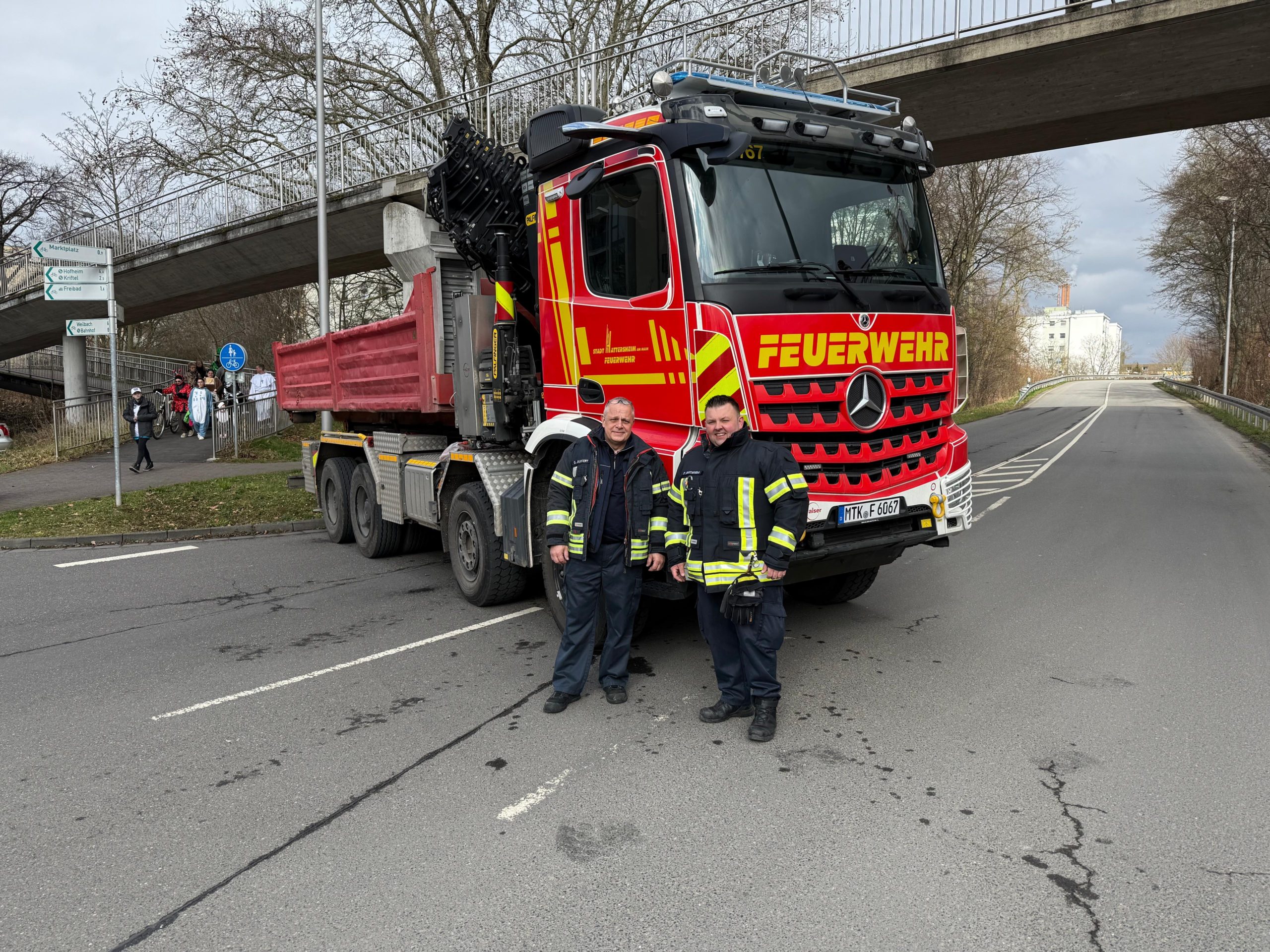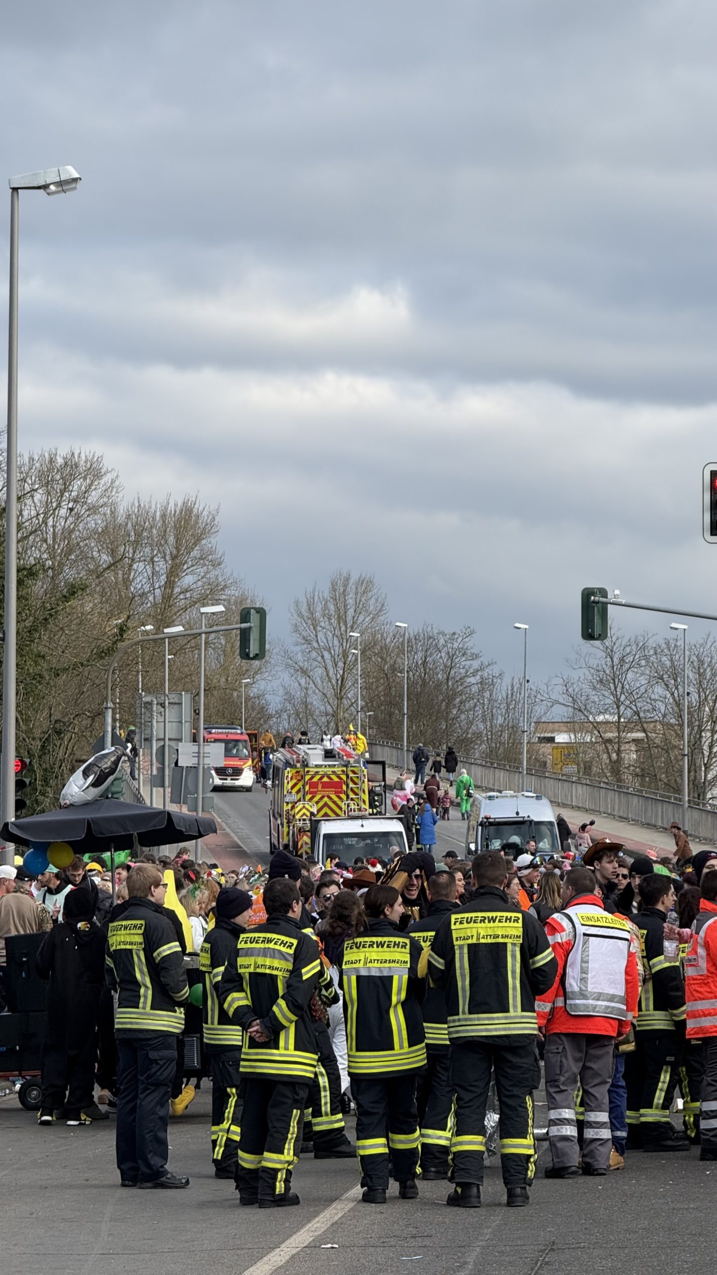 Während des Hattersheimer Fassenachtszuges sorgten die Feuerwehren der Stadt Hattersheim am Main zusammen mit dem Deutschen Roten Kreuz, der Polizei und der Stadtpolizei für die Sicherheit der Närinnen und Narren.