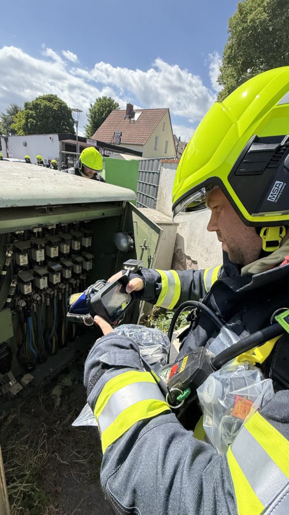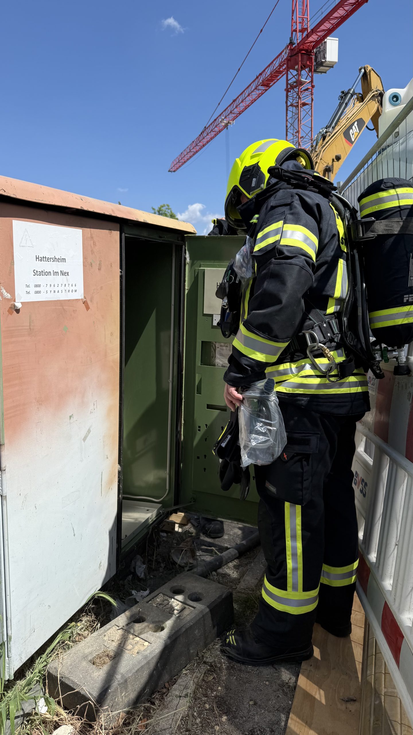 Um 13:57 Uhr wurde die Feuerwehr Hattersheim zu einer unklaren Rauchentwicklung in der Straße „Im Nex“ in Hattersheim alarmiert. Aus einem Stromkasten stieg Rauch auf. Ein Mitarbeiter der Syna war bei dem Eintreffen der Feuerwehrkräfte bereits vor Ort. Ein Atemschutztrupp kontrollierte den Stromkasten sorgfältig mit der Wärmebildkamera, konnte jedoch keine Feststellungen machen.
