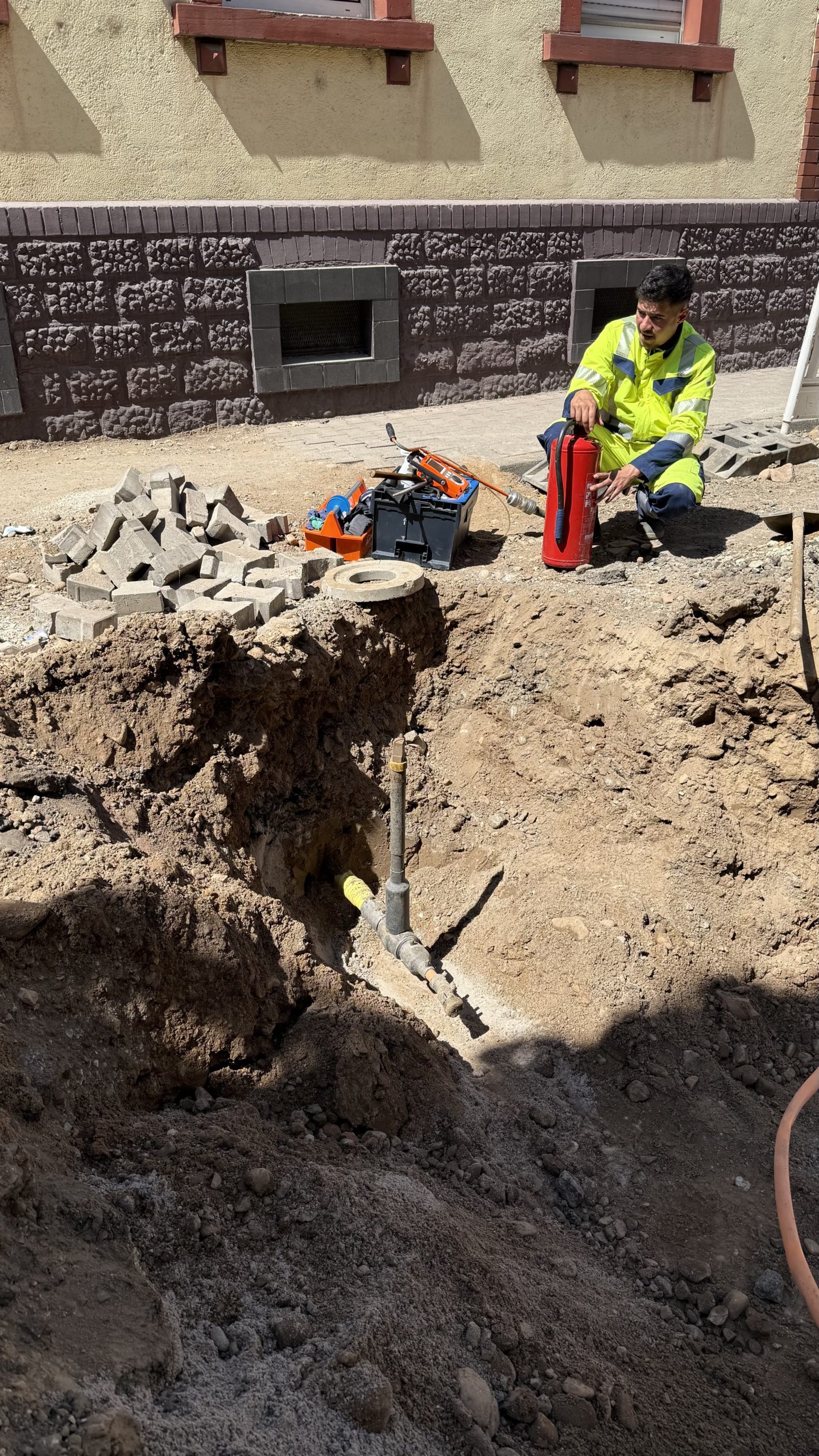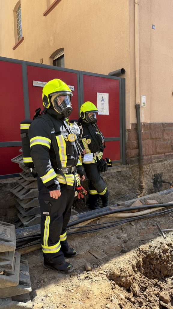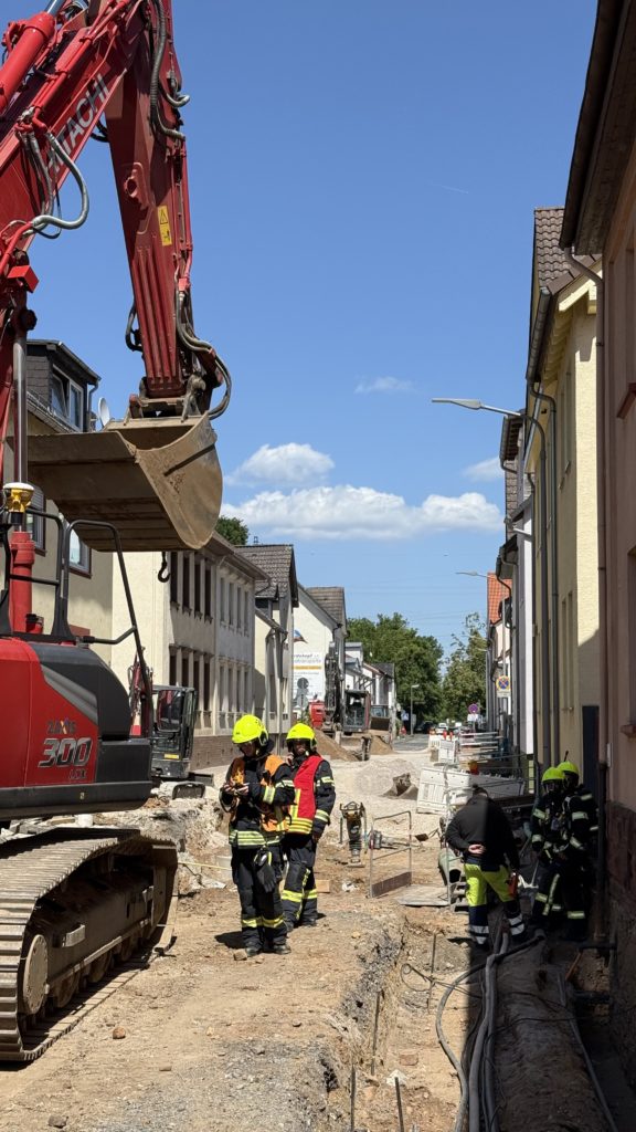 Nur wenige Minuten später – um 14:21 Uhr – wurde die Feuerwehr Hattersheim gemeinsam mit den Feuerwehren Okriftel und Eddersheim zu einer beschädigten Gasleitung in die Sindlinger Straße nach Okriftel gerufen. Auf einer Baustelle war bei Baggerarbeiten eine Hausanschlussleitung beschädigt worden. Die Mitarbeiter der Mainova, die bereits vor Ort waren, schieberten die Leitung ab. Die anrückende GABC-Messgruppe des Main-Taunus-Kreises konnte daher die Anfahrt abbrechen. Ein Atemschutztrupp führte gemeinsam mit dem Entstördienst der Mainova in einem angrenzenden Wohnhaus Gasmessungen durch, die glücklicherweise negativ ausfielen.