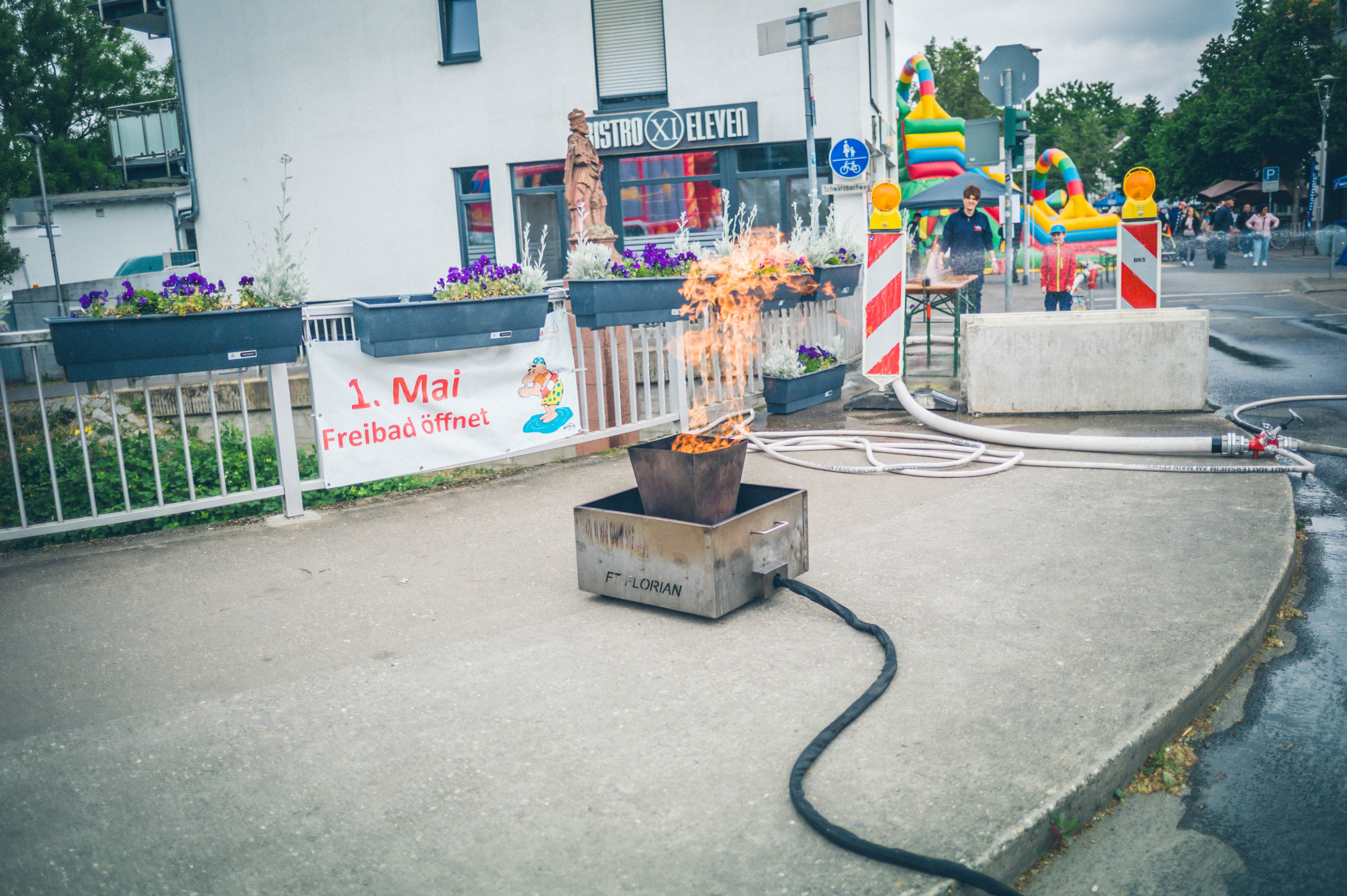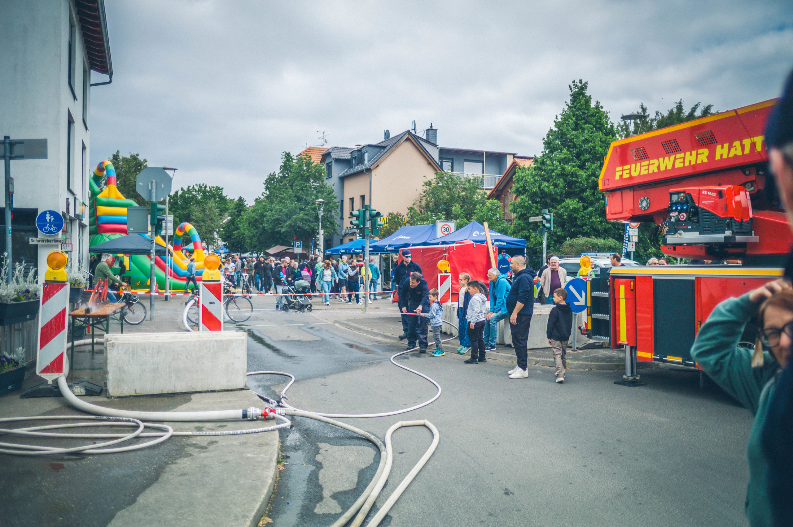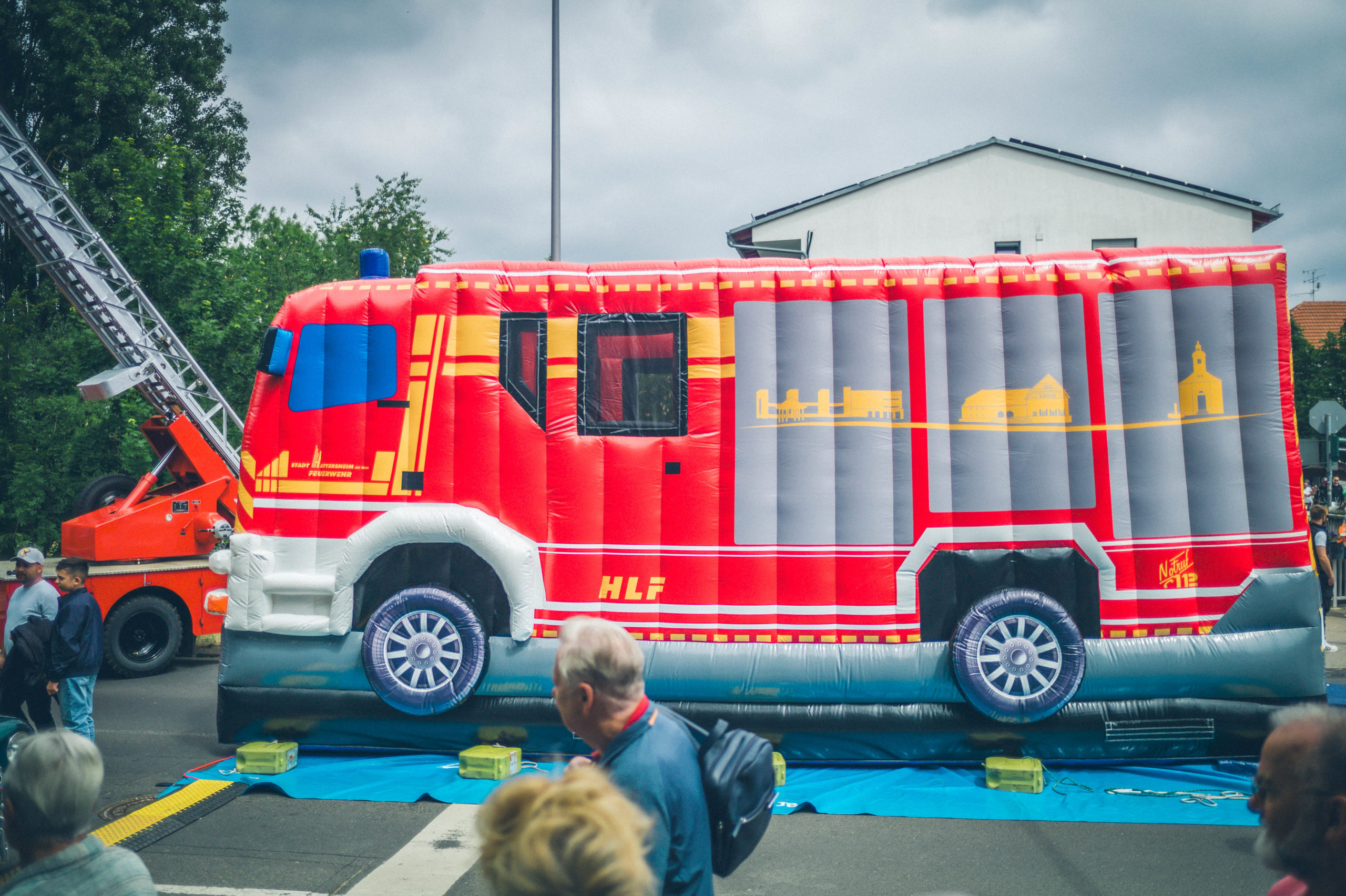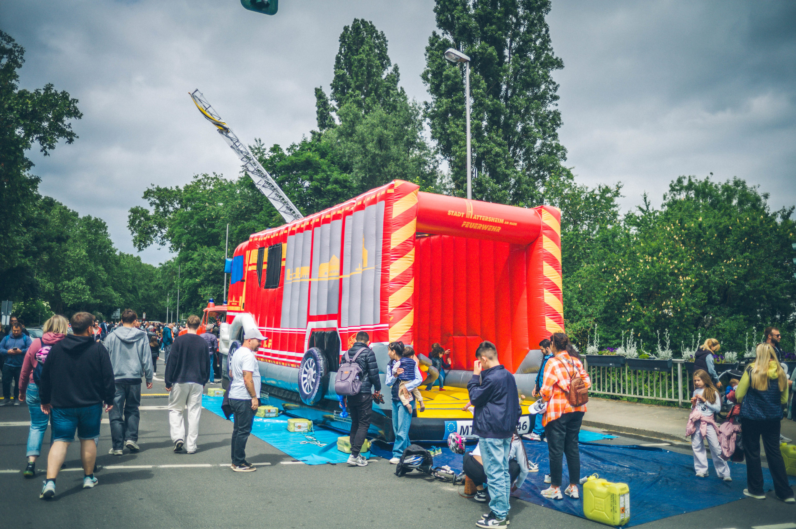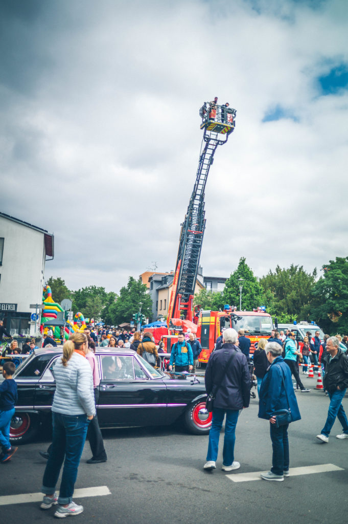 Auch für die jüngsten Besucher wurde einiges geboten: Neben dem beliebten Kinderprogramm feierte die Feuerwehr-Hüpfburg ihren großen Auftritt – und war den ganzen Tag über bestens besucht. Technikbegeisterte Gäste kamen zudem beim Anblick der historischen Drehleiter der Freiwilligen Feuerwehr Okriftel ins Staunen.