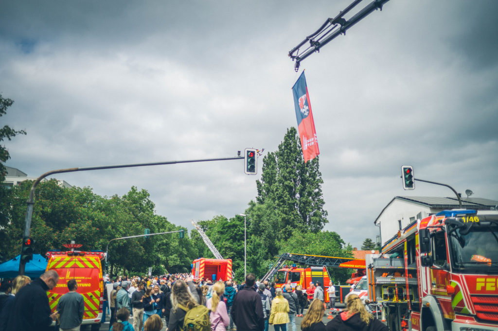 Besonderer Publikumsmagnet waren die Drehleiterfahrten über die Dächer der Innenstadt, die durch den Kauf von Losen gewonnen werden konnten. Die mutigen Gewinnerinnen und Gewinner freuten sich über einen einzigartigen Ausblick und einen kleinen Adrenalinkick – natürlich stets gut gesichert durch unsere Einsatzkräfte.