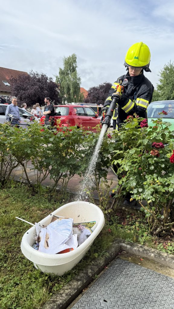 Offenbar hatten die Kinder mit Papier gezündelt. Die Feuerwehrkräfte führten noch Nachlöscharbeiten durch.