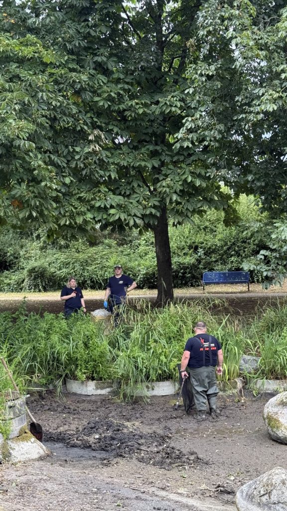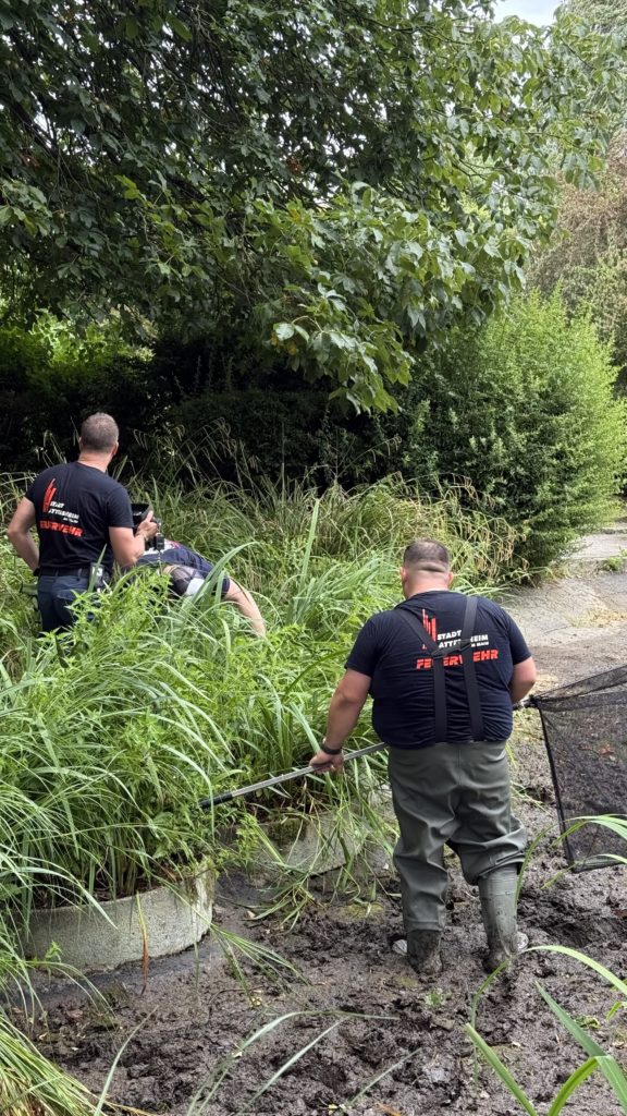 Am Donnerstag wurden die Feuerwehren der Stadt Hattersheim am Main um 14:23 Uhr zu einer Tierrettung in den Stadtpark alarmiert. Eine Entenfamilie sollte laut Meldung im Schlamm des abgelassenen Weihers feststecken – Hintergrund sind derzeit laufende Reinigungs- und Instandsetzungsarbeiten am Gewässer.