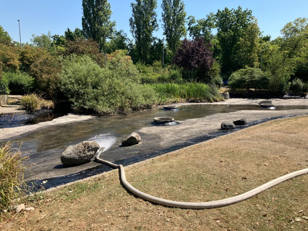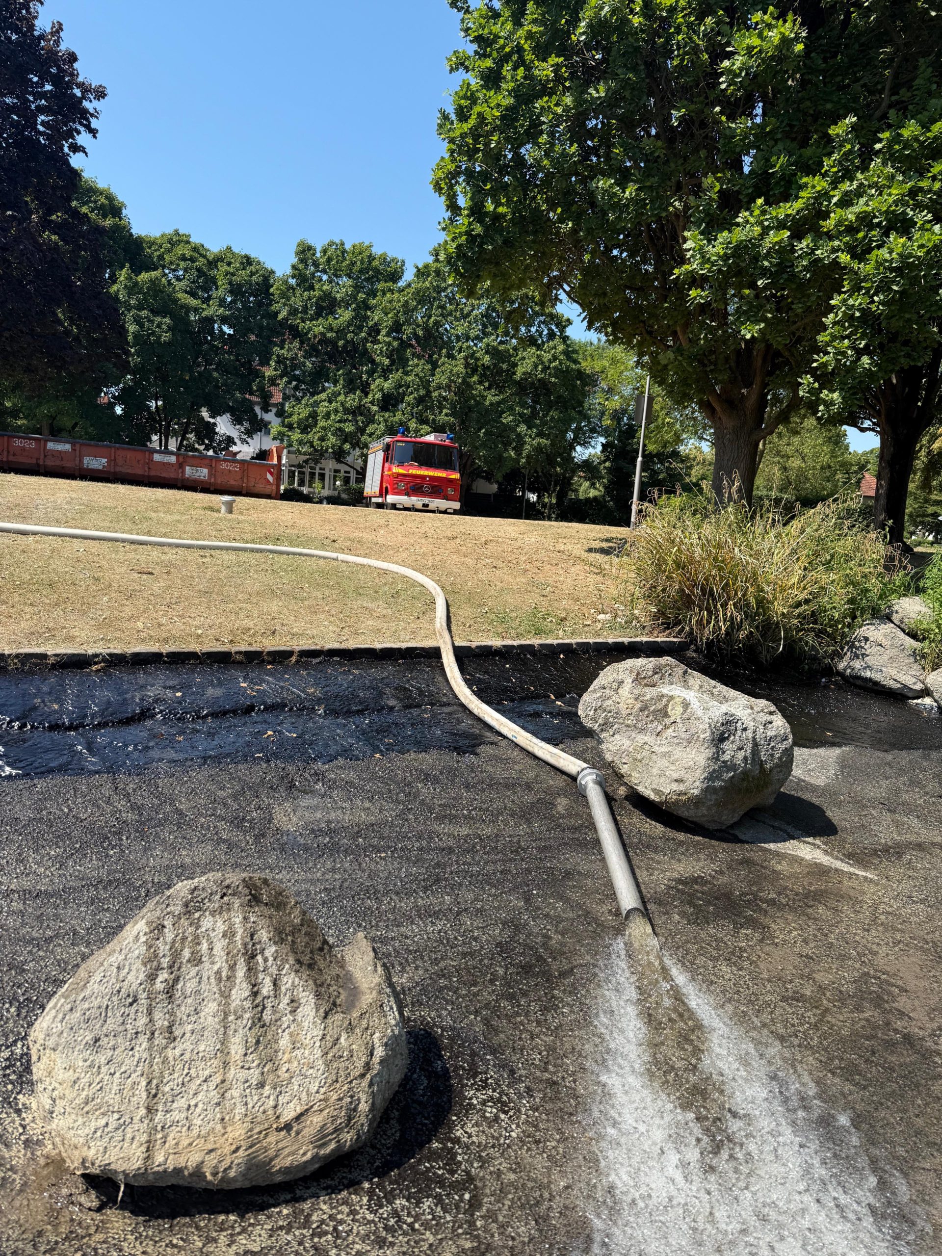 Gegen 11:16 Uhr wurden die hauptamtlichen Gerätewarte zur Unterstützung der Stadtwerke in den Stadtpark gerufen. Nach abgeschlossenen Reparatur- und Reinigungsarbeiten übernahmen die Einsatzkräfte das Wiederbefüllen des Weihers im Stadtpark.