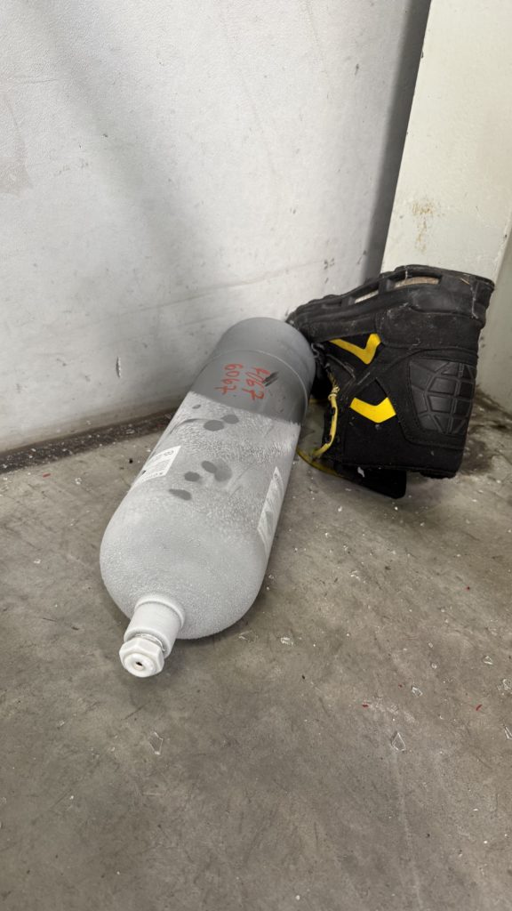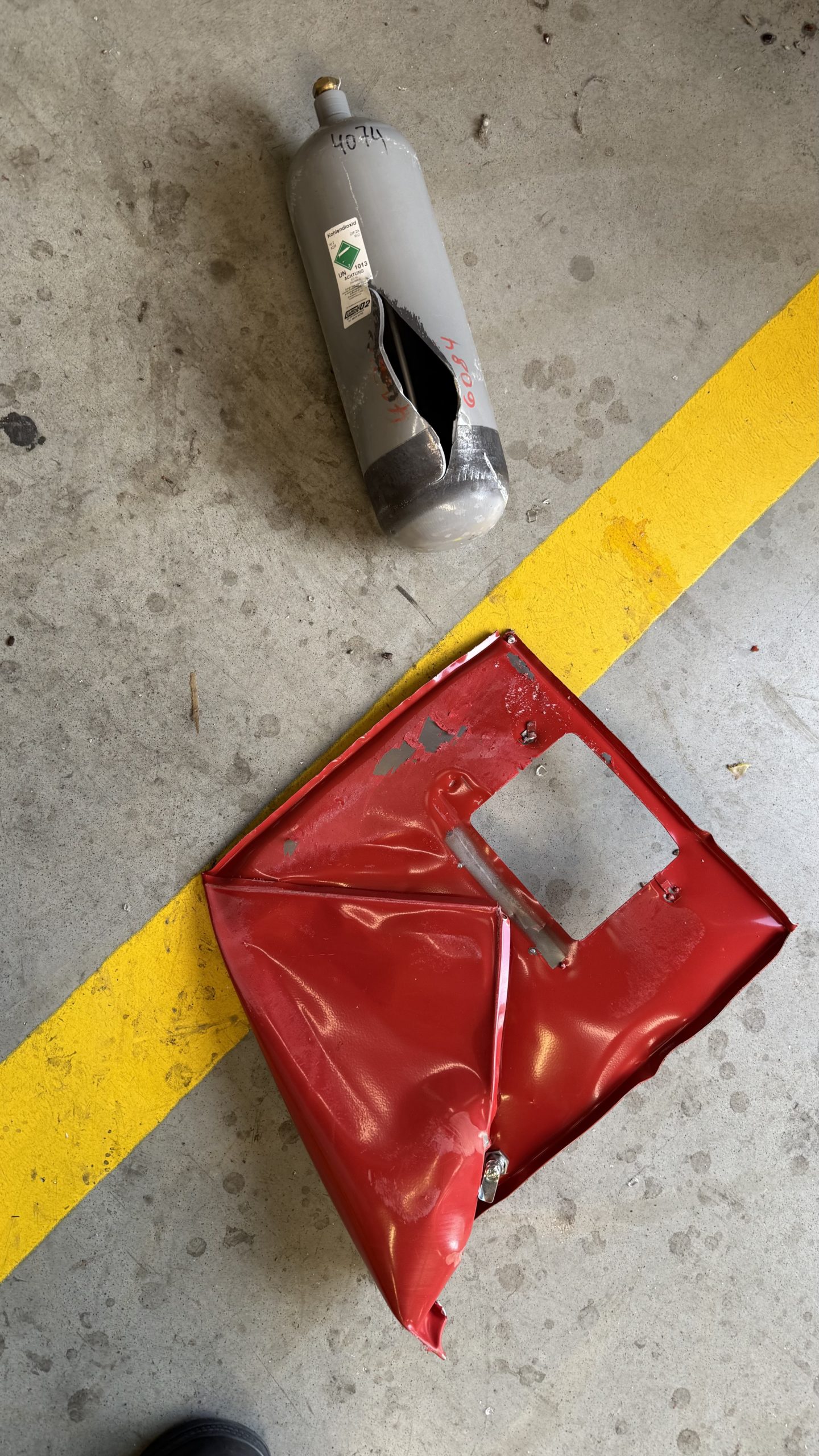 Der vierte Einsatz des Tages führte die Kräfte um 17:05 Uhr in die Philipp-Reis-Straße. In einem dort ansässigen Paketzentrum war es zum Zerknall eines Druckgasbehälters der Rauchabzugsanlage gekommen. Eine weitere Kohlendioxidflasche wurde infolgedessen beschädigt und strömte ab. Die Feuerwehr kontrollierte den Bereich, musste aber nicht weiter tätig werden. Ein Mitarbeiter wurde mit Verdacht auf ein Knalltrauma durch den Rettungsdienst behandelt. Ein zweiter Betroffener war bereits nach Hause gefahren, wurde dort jedoch ebenfalls medizinisch versorgt, nachdem die Leitstelle Frankfurt einen Rettungswagen dorthin entsandt hatte.