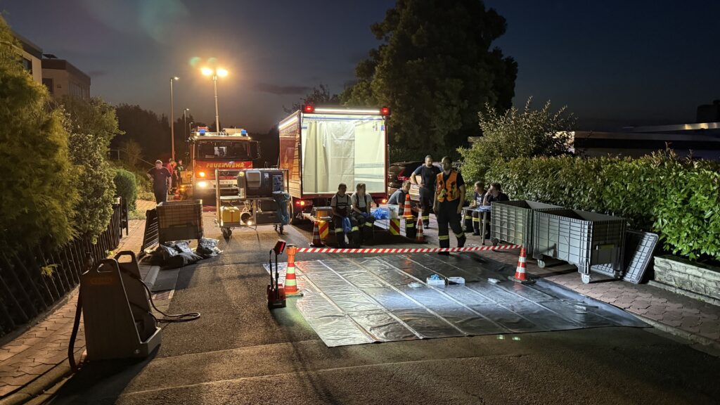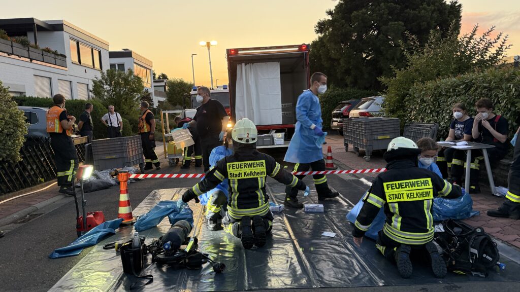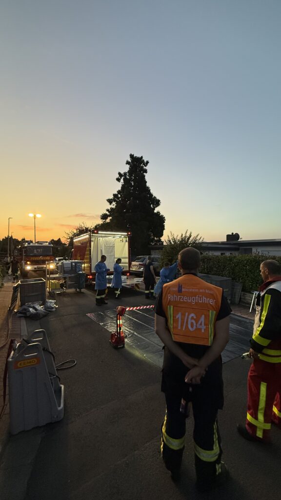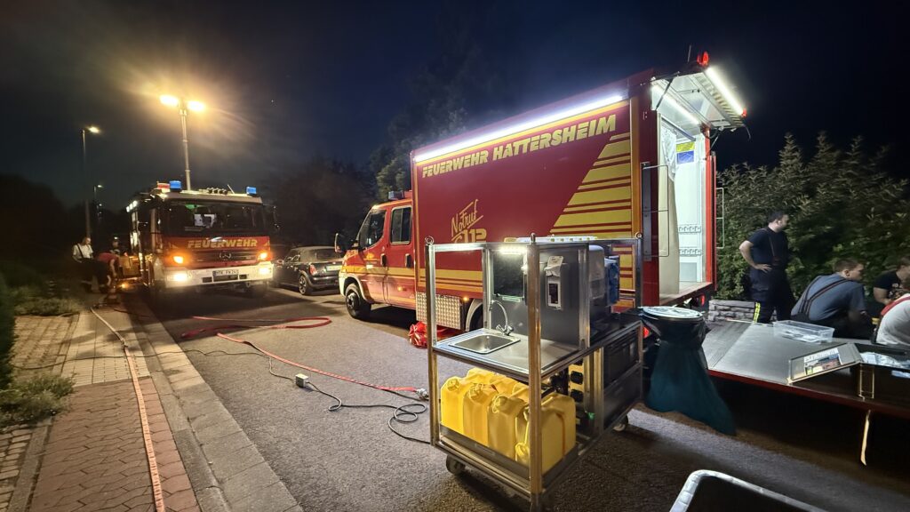 Gegen 3:30 Uhr erfolgte eine weitere Anforderung: Der Hygieneplatz der Hattersheimer Feuerwehren wurde benötigt, um die kontaminierten Atemschutzgeräteträger nach ihrem Einsatz fachgerecht zu entkleiden. Daraufhin rückten auch der Gerätewagen Logistik aus Hattersheim sowie ein Löschfahrzeug der Feuerwehr Okriftel zur Einsatzstelle nach.