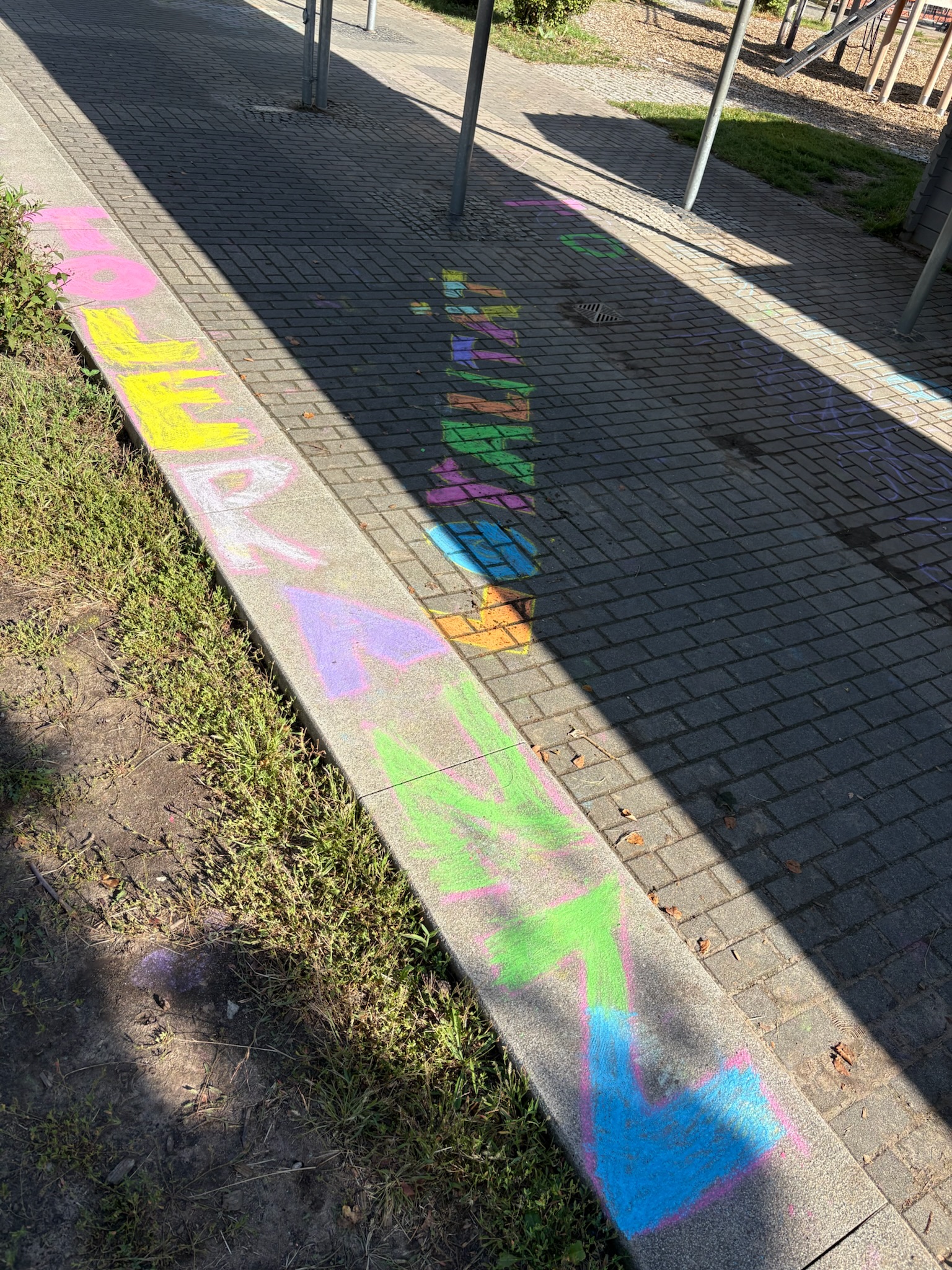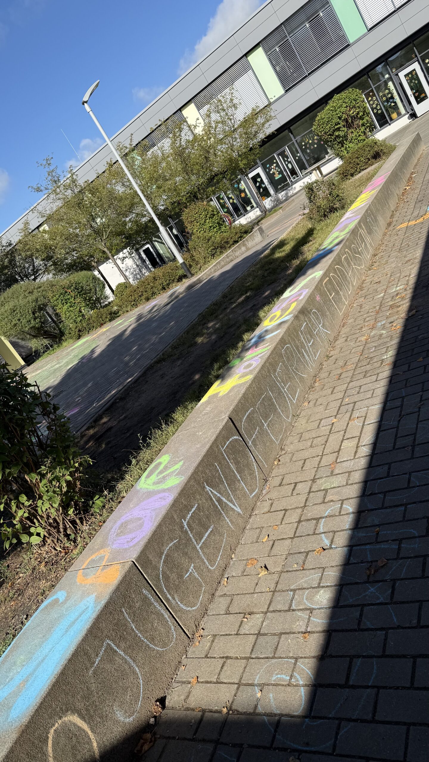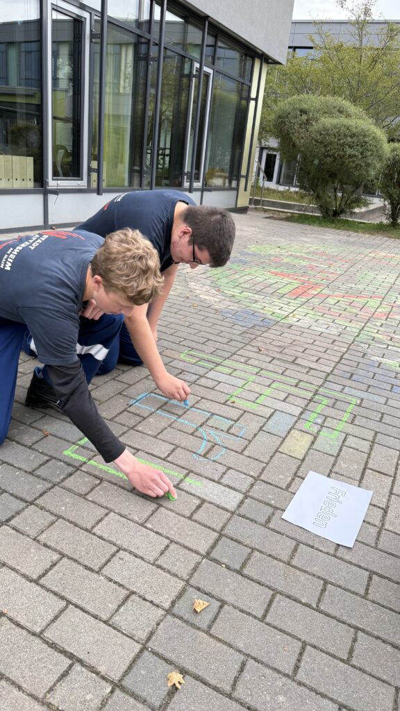 Am nächsten Morgen wurden die bunt umrissenen Begriffe von den Schülerinnen und Schülern mit Leben gefüllt – im wahrsten Sinne des Wortes. Mit farbiger Kreide gestalteten die Kinder die Begriffe kreativ aus und setzten sich anschließend im Unterricht mit ihrer Bedeutung auseinander. Die Werte bilden zugleich die Grundlage des Miteinanders in der Jugendfeuerwehr – eine Gemeinschaft, in der Respekt, Zusammenhalt und Mitbestimmung aktiv gelebt werden.