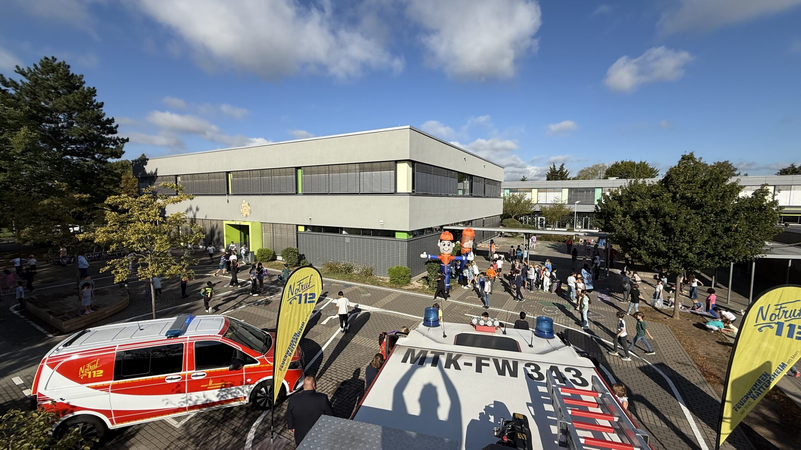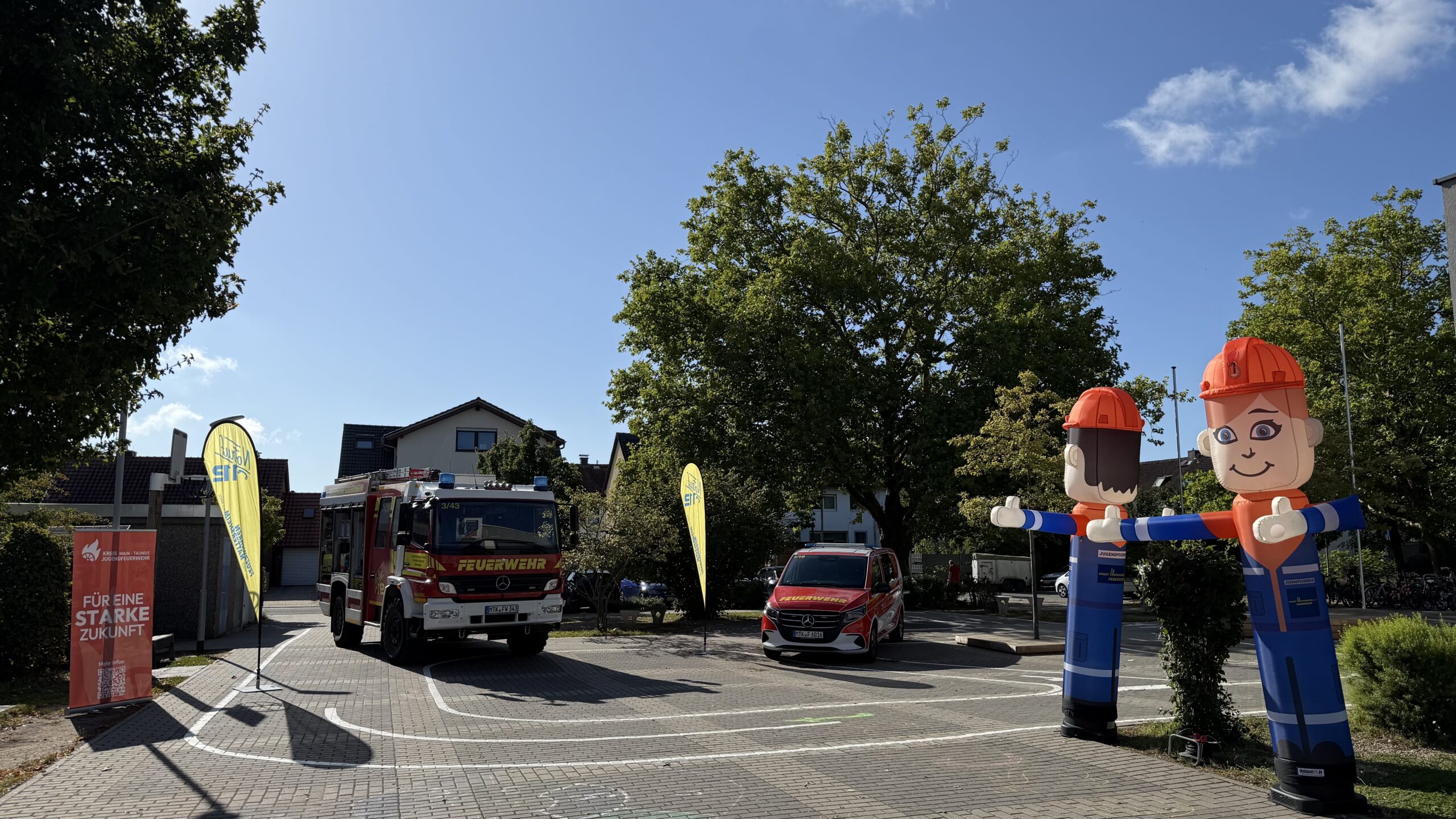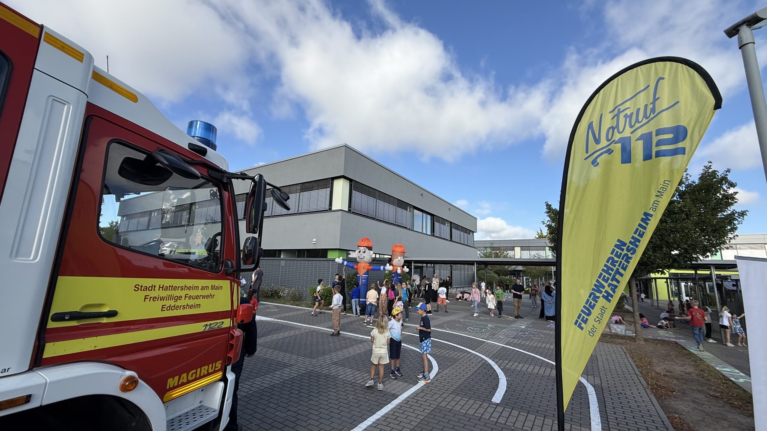 Mit Straßenmalkreide für Demokratie – unter diesem Motto beteiligten sich die Jugendfeuerwehren der Stadt Hattersheim am Main am hessenweiten Aktionstag „Jugendfeuerwehr ist WERTvoll“. Bereits am Vorabend, dem 28. August, haben Mitglieder der Jugendfeuerwehr Eddersheim gemeinsam mit Stadtjugendfeuerwehrwartin Svenja Baum und Jugendfeuerwehrwart Sebastian Zengeler zentrale demokratische Werte wie Freiheit, Respekt, Gerechtigkeit, Frieden, Toleranz und Bildung auf den Schulhof der Eddersheimer Schule geschrieben.