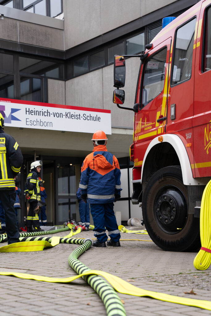 Rund 140 Kinder und Jugendliche aus zehn Jugendfeuerwehren sowie dem Jugendrotkreuz nahmen am vergangenen Samstag an einer groß angelegten Übung an der Schule in Eschborn teil. Auch die Jugendfeuerwehren aus Hattersheim, Okriftel und Eddersheim waren mit dabei.