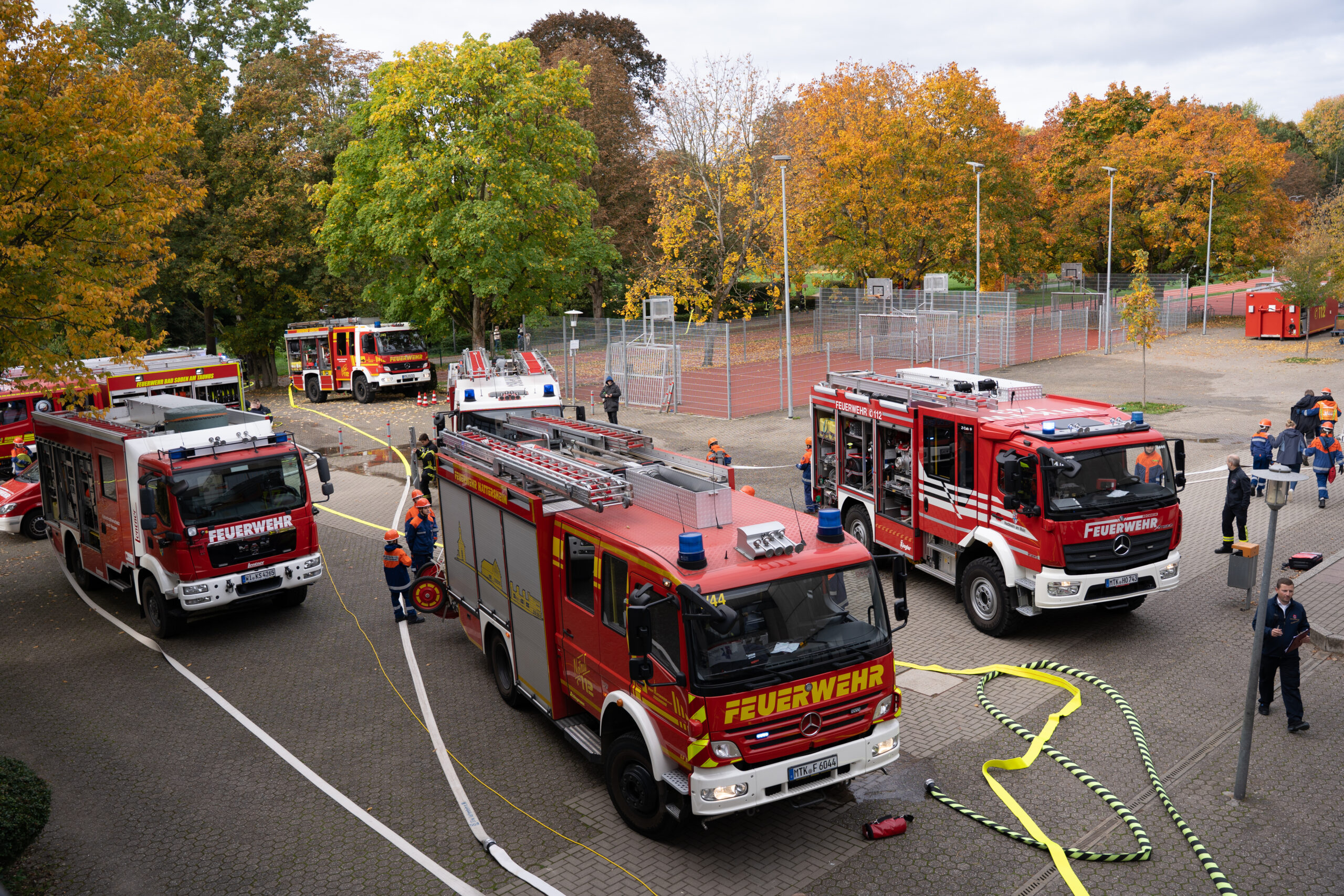 Rund 140 Kinder und Jugendliche aus zehn Jugendfeuerwehren sowie dem Jugendrotkreuz nahmen am vergangenen Samstag an einer groß angelegten Übung an der Schule in Eschborn teil. Auch die Jugendfeuerwehren aus Hattersheim, Okriftel und Eddersheim waren mit dabei.