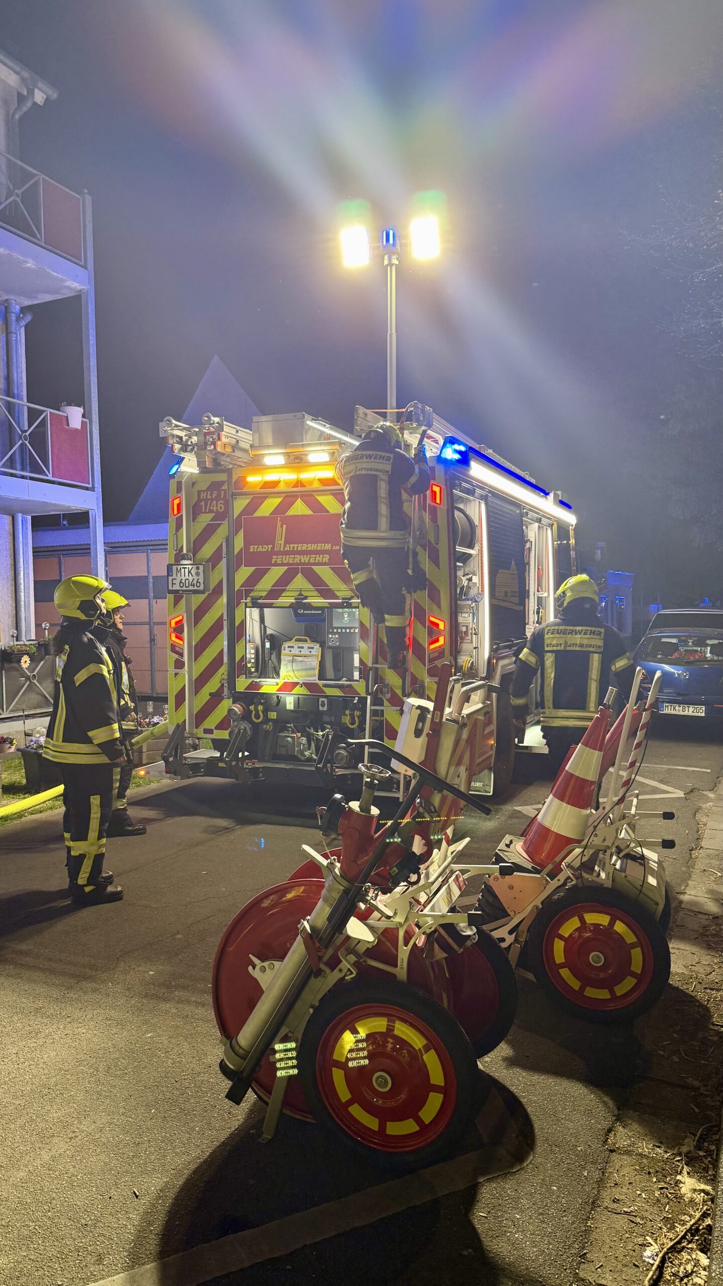 Mit der Meldung „Rauch aus Wohnung“ und dem Stichwort „F2 – Feuer in Gebäude“ wurden die Feuerwehren der Stadt Hattersheim am Main am Donnerstagabend zu einem Einsatz in die Pregelstraße in Hattersheim alarmiert.