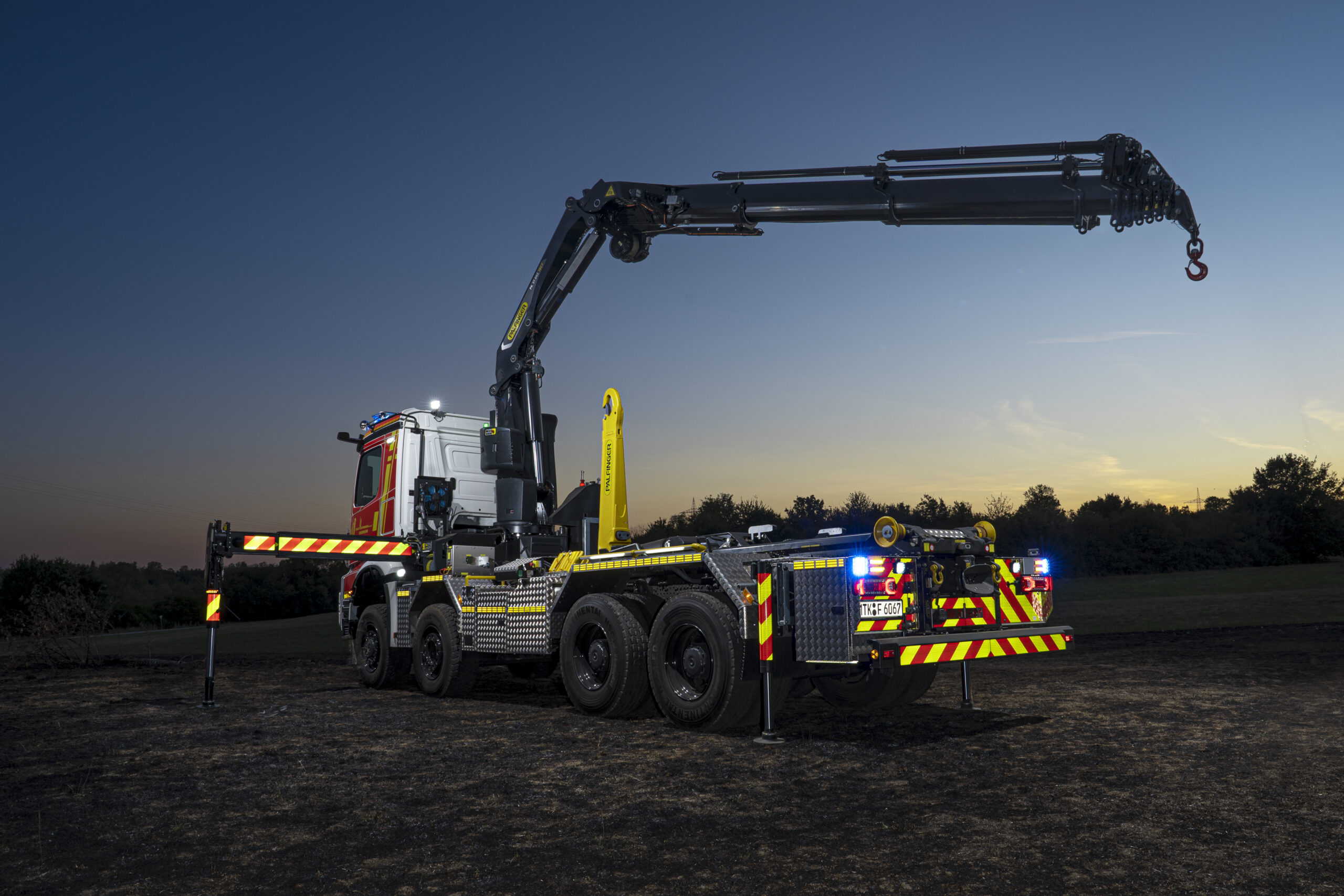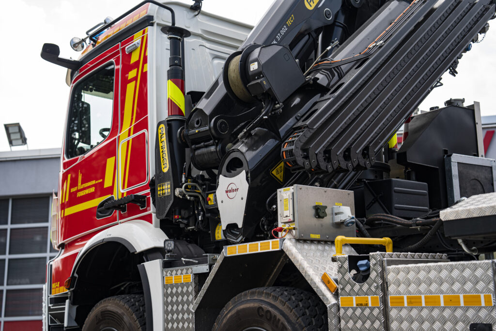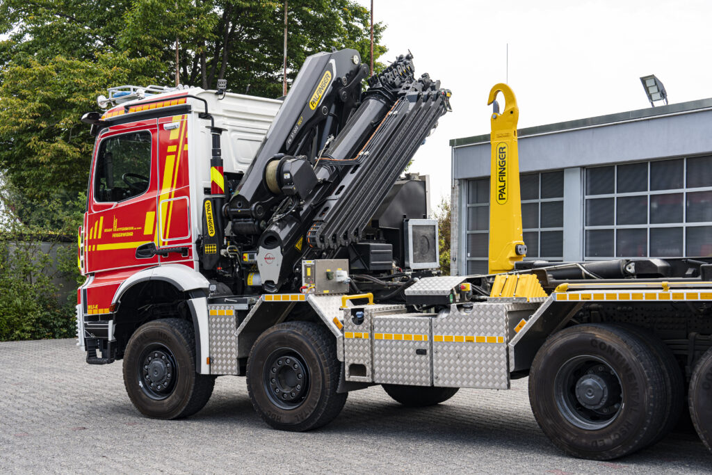 Das Wechselladerfahrzeug-Kran (WLF-K 32/6900) ist mit einem leistungsfähigen Ladekran (PALFINGER PK 37.002 TEC 7) ausgerüstet, der in Verbindung mit dem umfangreichen Kranzubehör auf dem Abrollbehälter Kran/Rüst (AB-K/R) für schwere technische Hilfeleistungen eingesetzt wird. Der Kran ermöglicht das präzise Heben, Bewegen und Positionieren schwerer Lasten auch unter beengten Platzverhältnissen.